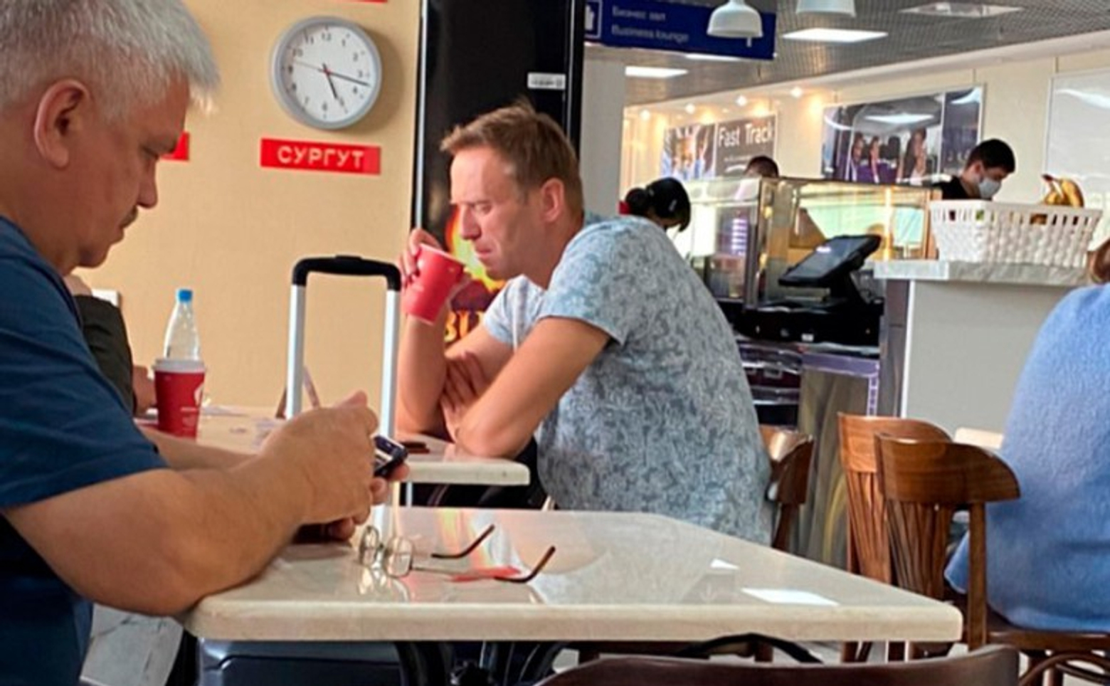 Испарина, которую заметила Ярмыш, бывает при гипогликемии, но содержание сахара в крови оказалось повышенным. Перед тем как потерять сознание, Навальный отказался от воды, а при гипергликемии больные чувствуют сильную жажду и много пьют. Гипергликемическая кома развивается постепенно, больной сначала становится сонливым и вялым, а самочувствие Навального в самолете резко ухудшилось, он громко кричал от боли. Тот же Telegram-канал Baza опубликовал фотографию Навального, сделанную в автобусе томского аэропорта непосредственно перед посадкой в самолет. Никаких признаков приближающейся комы не видно.
