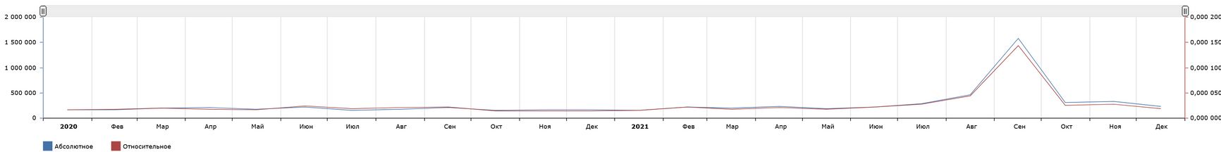 Очевиден рост интереса, связанный с сентябрьскими выборами в Госдуму, и возврат к базовому уровню, который, кстати, вдвое ниже, чем у запроса «Навальный».