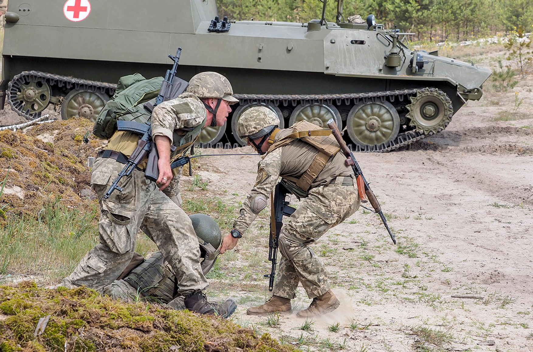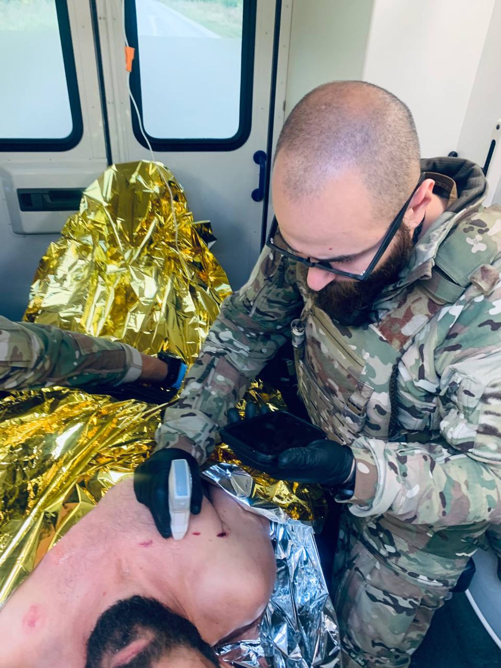 Согласно протоколам MARCH и TC3, мы не должны предоставлять первую медицинскую помощь, находясь на поле боевых действий, так как это угрожает жизни и парамедиков, и раненых. Соответственно, максимум, что можно сделать в окопах, — наложить турникеты на конечности человека и быстро погрузить его в машину. И пока машина движется ко второму этапу эвакуации, в ней оказывается вся необходимая помощь: остановка массивных кровотечений, обеспечение дыхания, циркуляции воздуха, перекрытие всех сложных травм, для которых нужно хирургическое вмешательство, стабилизация раненого, то есть антибиотики, обезболивающие и инфузии.