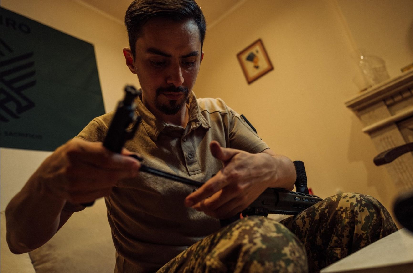 В Яворове я пробыл около недели. Нас особенно не готовили, разве что выясняли, кто умеет обращаться с оружием, а кто нет. Дома у меня не было военного опыта. Я знал, как держать оружие и как стрелять, но не более того. На базе нас разделили на группы в зависимости от навыков. Когда считалось, что команда готова к отправке, ее переводили в «палаточный городок». Это означало, что в течение следующих двух суток отряд куда-то отправят. Мне повезло тренироваться с группой грузин, и в Киев мы выдвинулись вместе. Многие из этих ребят сражаются до сих пор.
