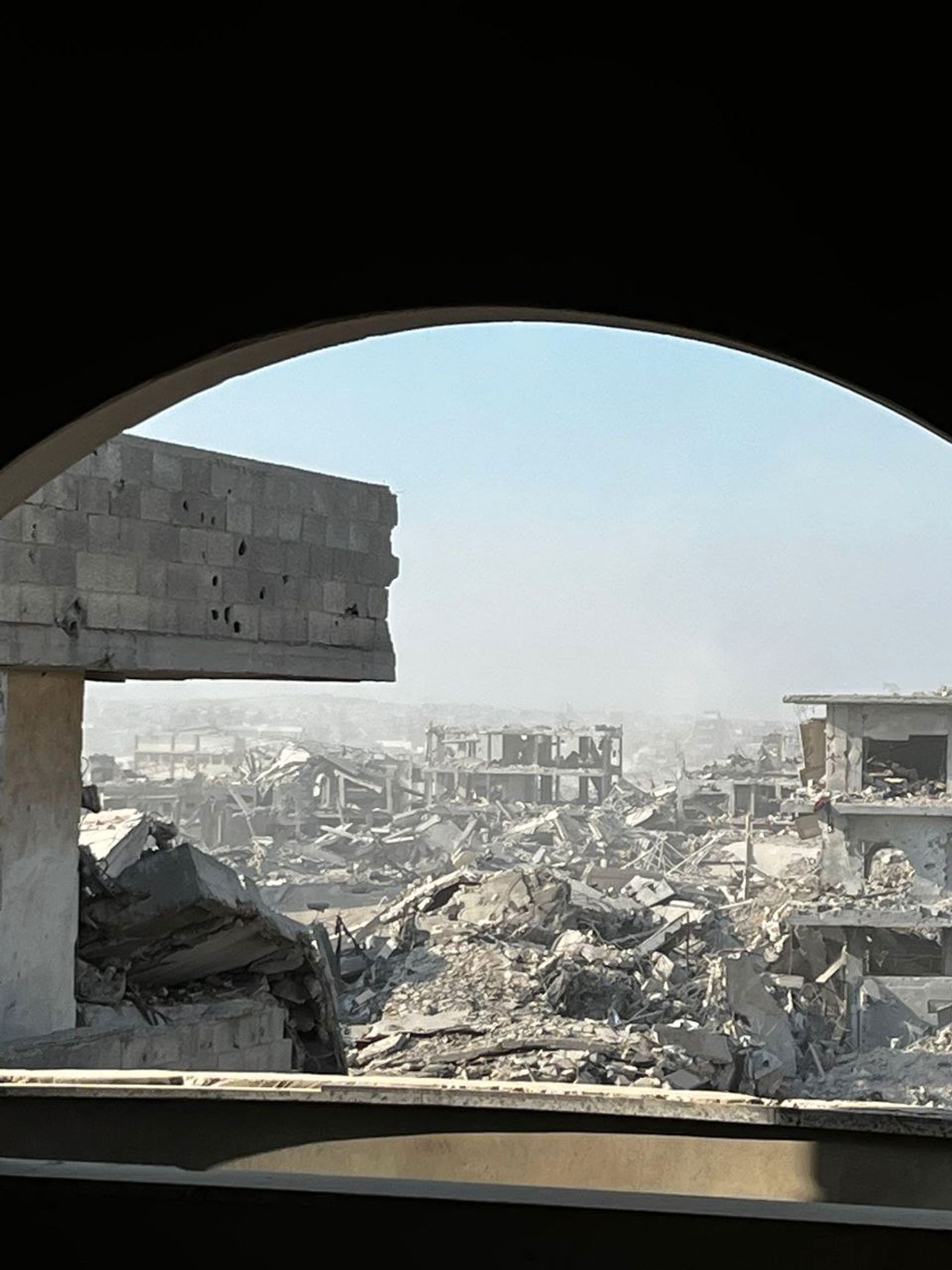 Много коробок домов из светлого камня, но почти все они — в труху или остались одним каркасы. Те, что сохранились, занимает ЦАХАЛ — под штабы и другие цели. Судя по развалинам — мне было интересно, я смотрел фотографии с Google-карт, — дома в Рафахе были примерно такие же, как на Западном Берегу Иордана, то есть не очень богатые. Местных жителей я не видел.