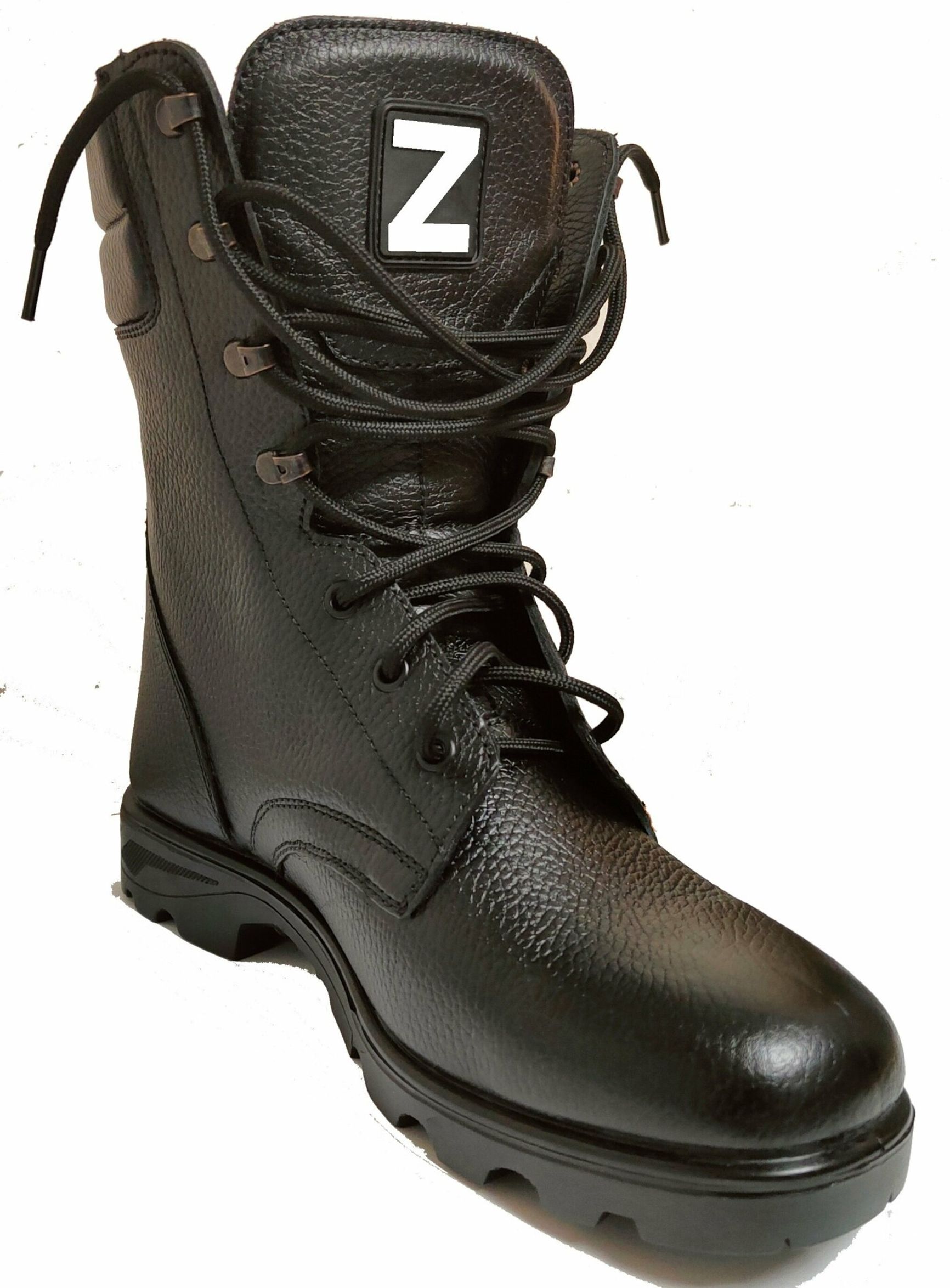 Предприятие шьет военные берцы и в прошлом году полностью переквалифицировалось на выпуск продукции под нужды армии. На язычках берцев указана буква Z.