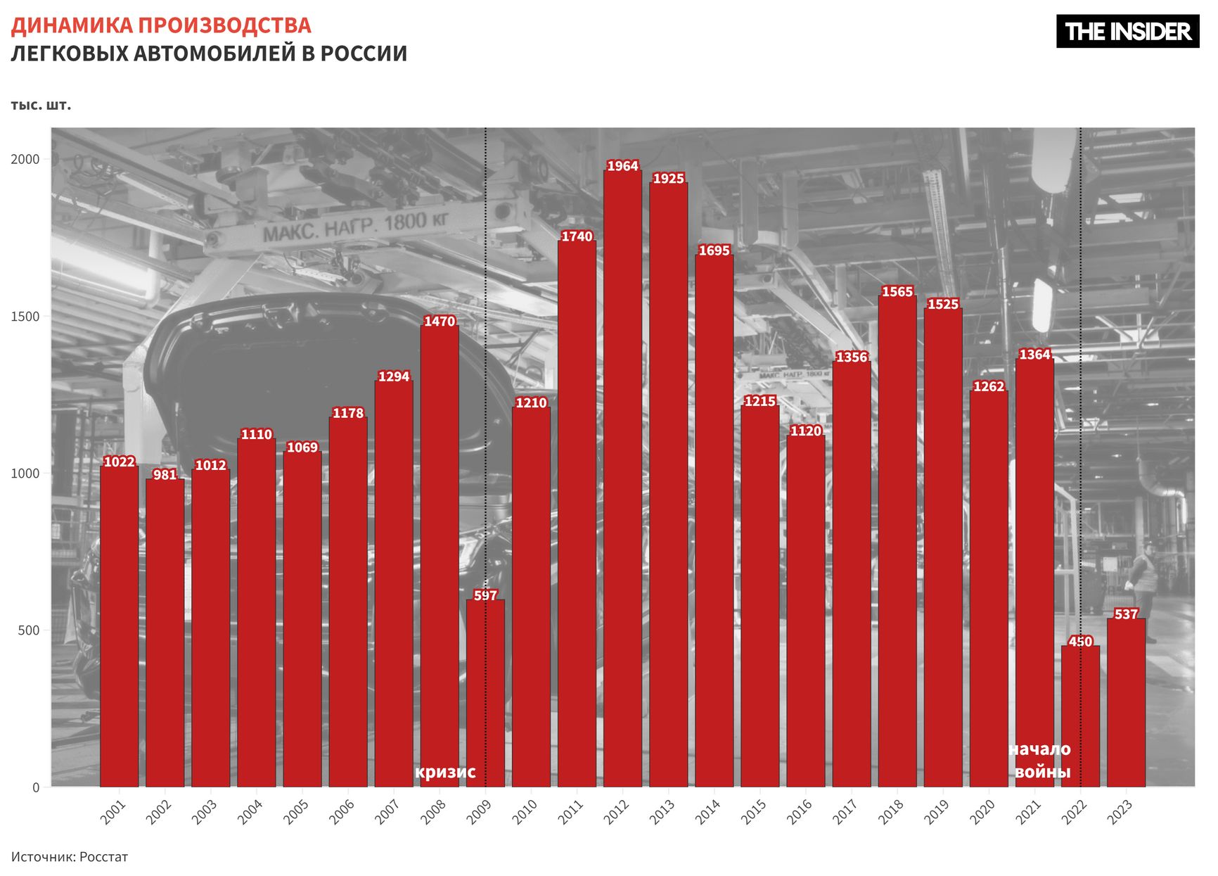 Уход западных концернов после февраля 2022 года остановил заводы, а санкции вызвали трудности с поставками комплектующих. Последовал крупнейший за всю постсоветскую историю спад автопрома.