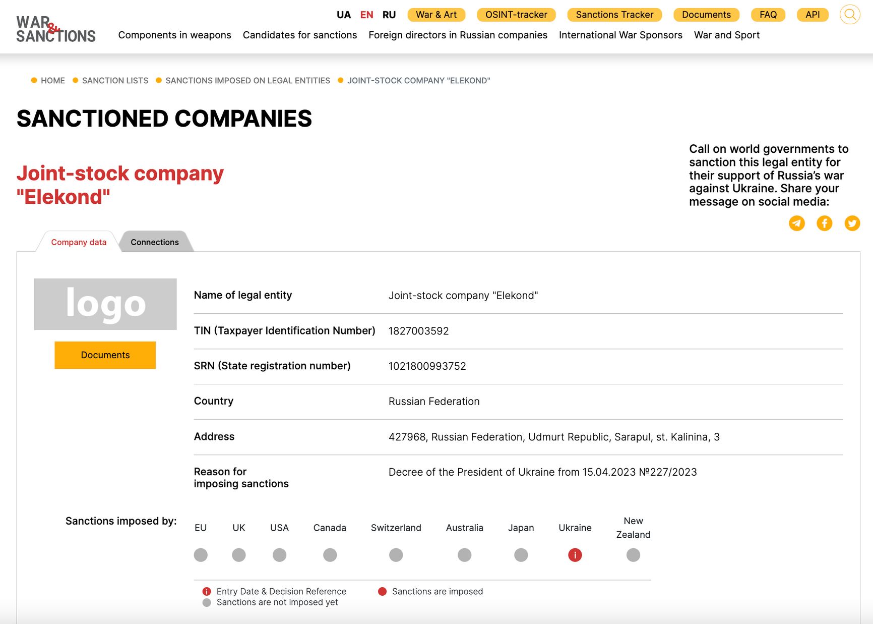 The only country that has imposed sanctions on Elekond is Ukraine. This means that Japanese firms can indeed trade with the Russian defense contractor.