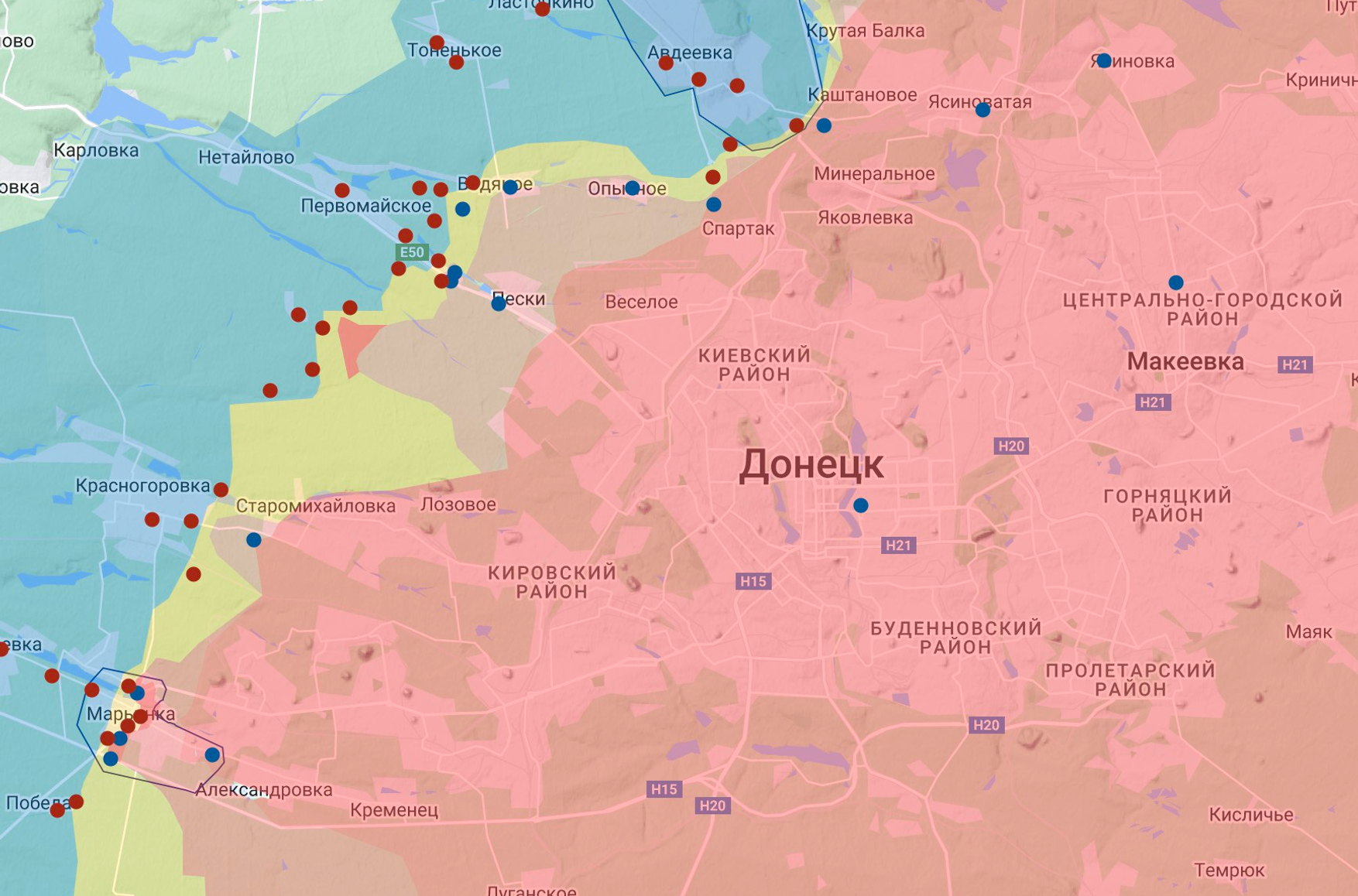 AFU reserve colonel and military expert Roman Svitan told The Insider that positional battles have occurred in Marinka for the past eight years. The Russians occupy up to “the middle of the city,” the AFU then knocks the Russian units out, and they retreat along Aleksandrivka, meaning the “Marinka grouping” is constantly moving. The AFU has now indeed withdrawn from the eastern part of the city, confirms Svitan, as the Russians have destroyed it and ground down the fortifications. The Russians have entered Marinka only halfway, and the AFU is pounding them with artillery – similar situations have occurred more than once over the past eight years, the expert says. According to Svitan, staying on the defensive in this area of Marinka is convenient – the AFU is now engaged in “positional warfare,” maintaining a level of active defense.