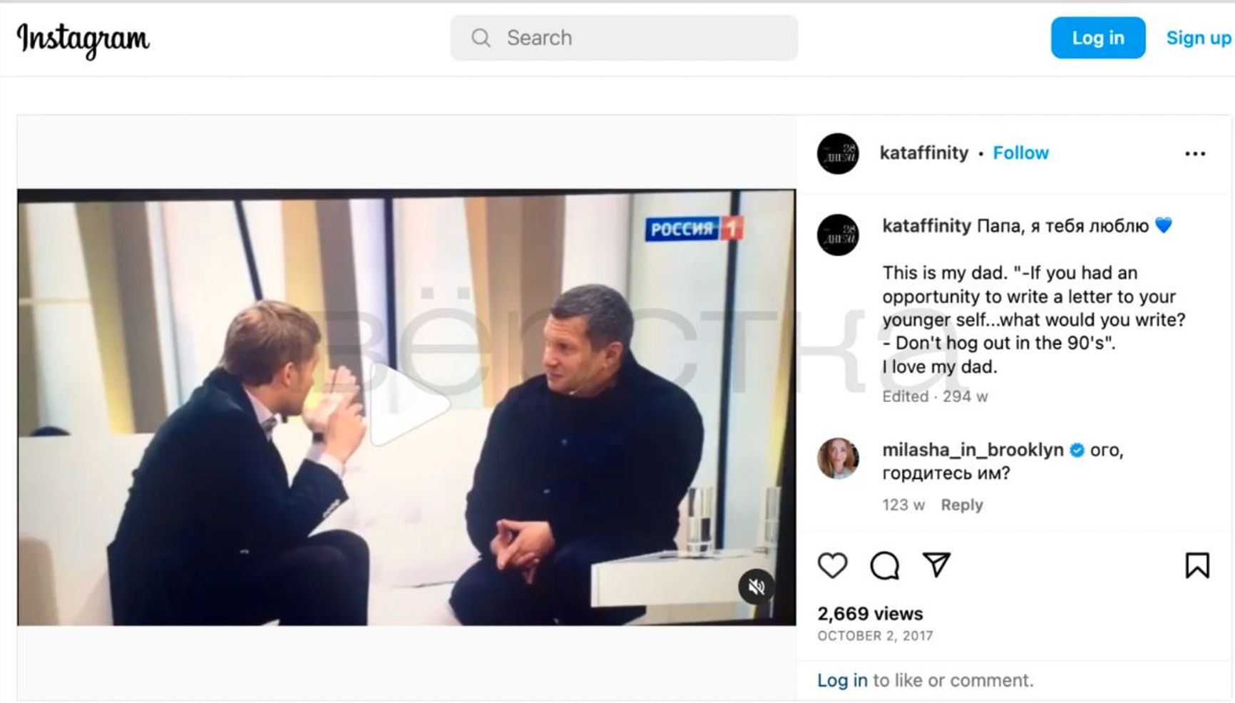 According to the publication, the woman does not hide her kinship with Vladimir Solovyov. She has dedicated several posts to him on Instagram, and posted joint photos with him. A caption under one of the posts read: “Thank you for being my dad.”