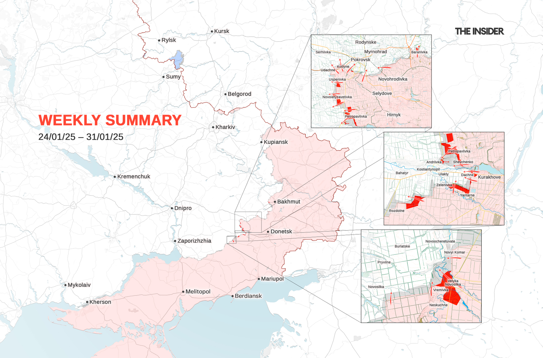 Russia's Kursk Region enjoyed a period of relative calm this past week. Ukraine's 82nd Separate Air Assault Brigade reported repulsing an assault by Russia's 155th Separate Marine Brigade, which is infamous for shooting Ukrainian prisoners of war. The Russian forces carried out strikes on populated areas occupied by the enemy. Russian television proudly presented a story from the “liberated” Nikolayevo-Daryino, which turned out to have been filmed in the village of Olgovka 20 kilometers to the north, from where AFU units withdrew back in October 2024.