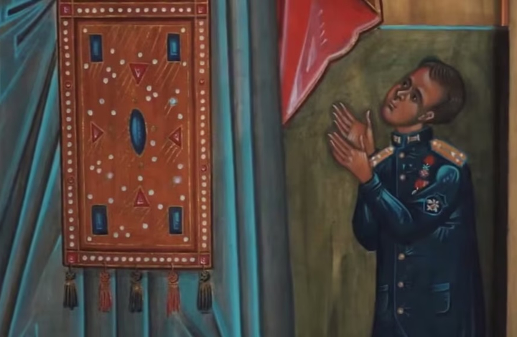Detail of a donor icon showing Senior Lieutenant Ruslan Sheyka next to the hieromartyr Rusticus of Paris. Photo: Screenshot by Sever.Realii