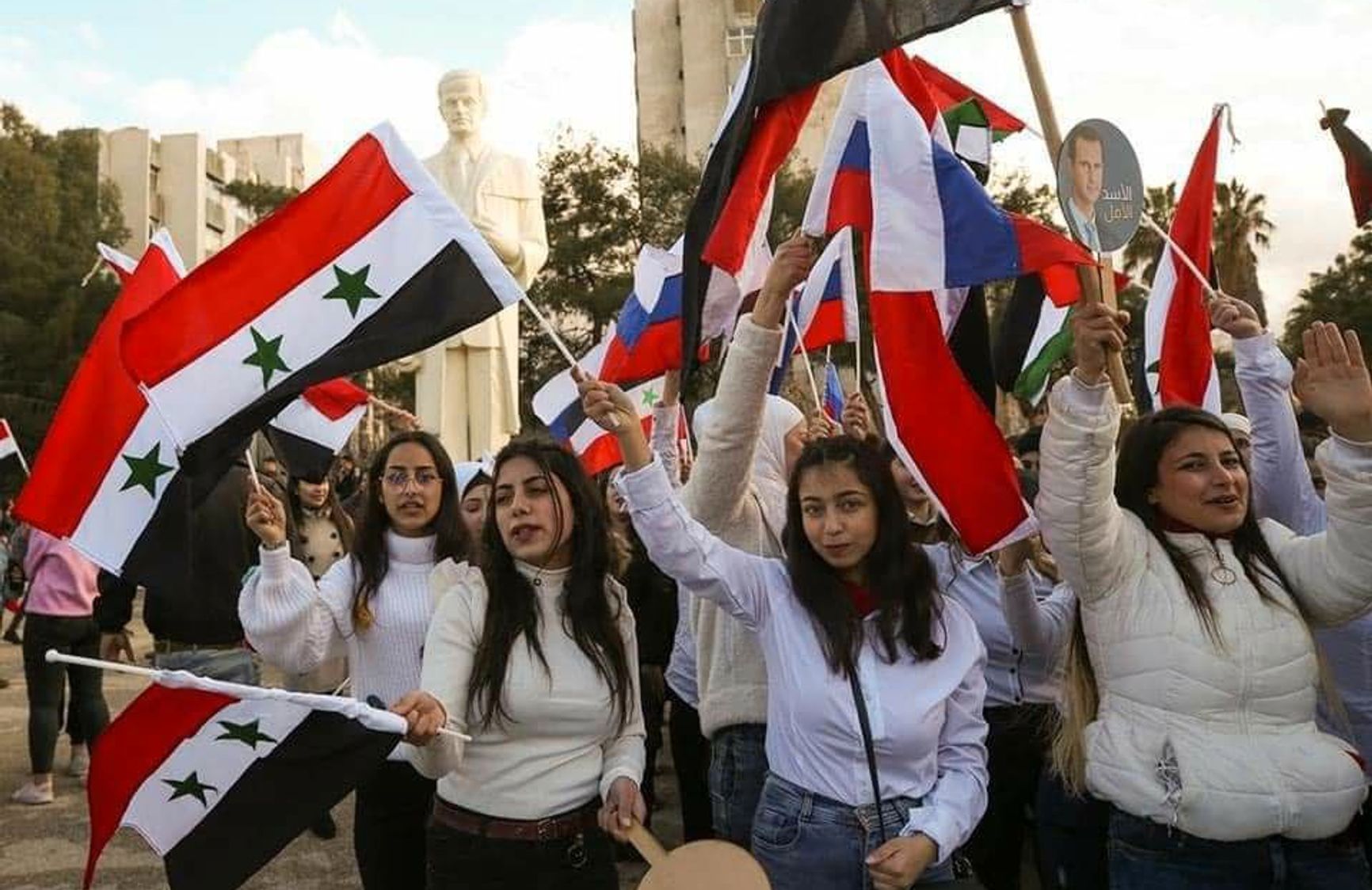 Over the 7 years of military intervention in Syria, Russia has entrenched itself into the Syrian regime. Now it demonstrates its loyalty to Putin not only by organizing the recruitment of so-called volunteers, but also voluntary-compulsory rallies with displays of Russian symbols, portraits of Putin and the letter Z - as an imitation of international support for Russia in the war with Ukraine.