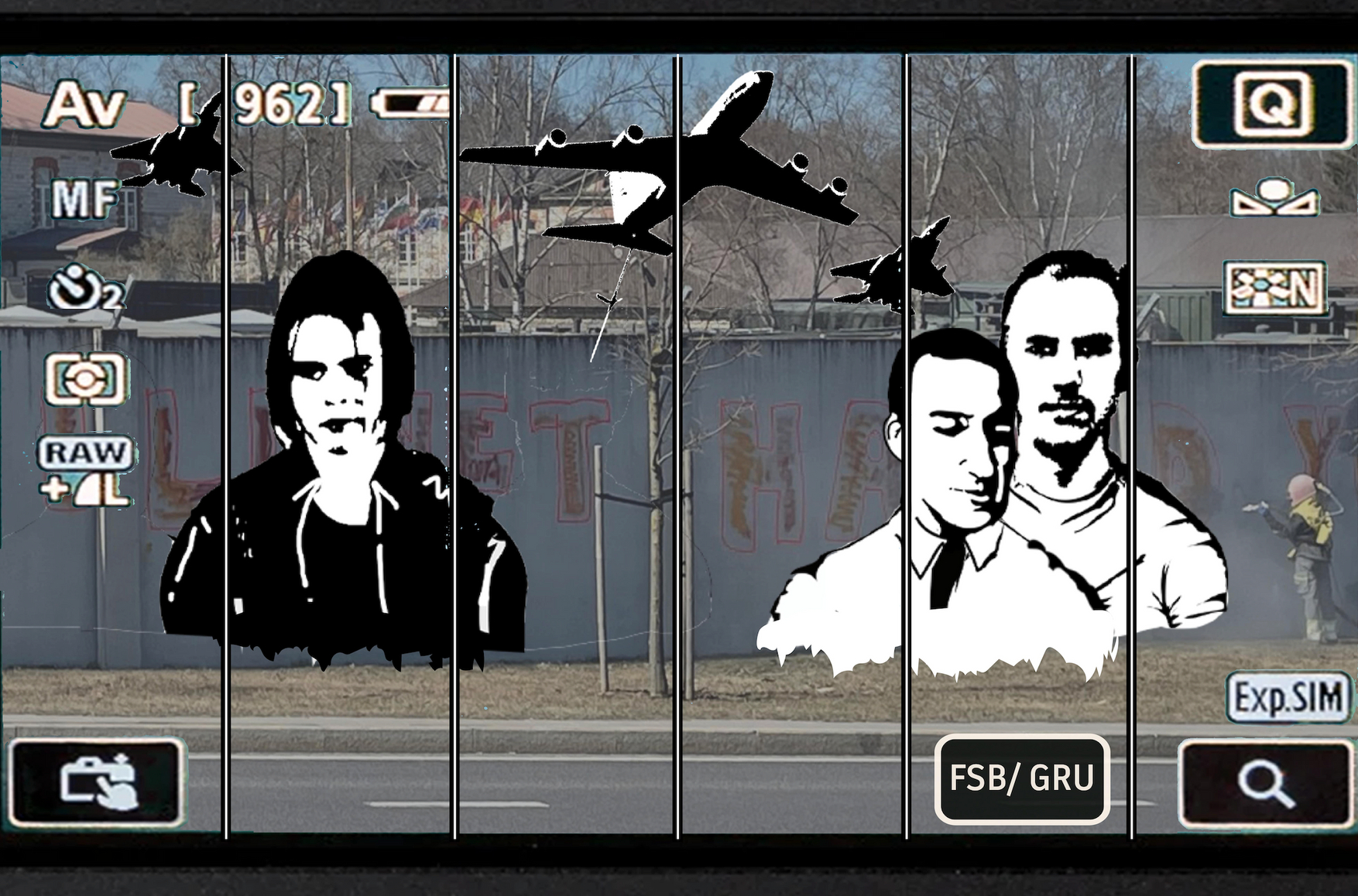 After getting off the bus, the two walked for about an hour until they reached a concrete wall. They were to spray an image the Kid had received from the anonymous client on his cellphone. Neither understood exactly what the writing meant, but after tagging the wall with orange-red letters, they took a photo of their work, sent it to the client, then boarded a bus for the return journey back to Latvia. Hodonovičs received 400 euros.