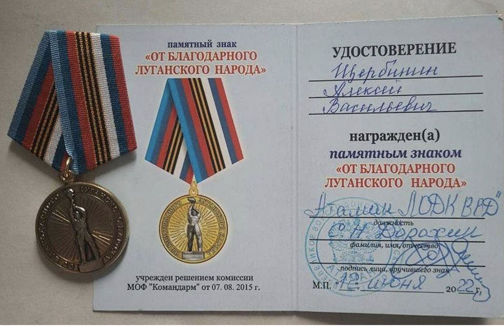 But one day, to the surprise of the subscribers, the owner of the chat room posted a medal awarded by the leadership of the so-called LNR. “From the grateful people of Luhansk,” read the inscription on the attached card.