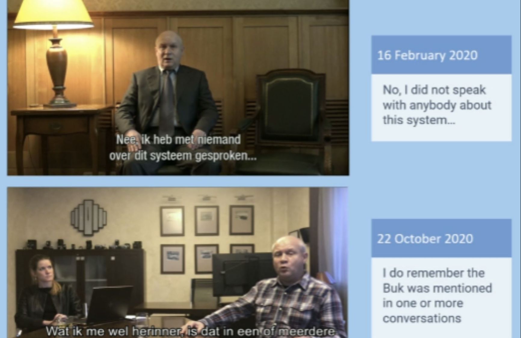 Вчера сторона обвинения отметила, что некоторых свидетелей по делу не удалось допросить из-за «соображений безопасности, обструкции со стороны РФ, и смерти одного из них». «Мы передали защите сотни документов, тысячи фото, аудиофайлов, защита 4 дня допрашивала свидетеля от российского производителя «Буков»... Один из авторов видео с «Буком» писал нам, что к нему дважды ходили вооруженные люди. Есть и угроза от ГРУ и ФСБ, которые принимают участие в войне на Донбассе <...> Мы знаем, что российские спецслужбы пытаются помешать раскрытию правды, они вполне могут искать свидетелей. Все это подтверждается нашими расследованиями. По каждому свидетелю принимали конкретные меры по защите их личности», — отметила сторона обвинения.