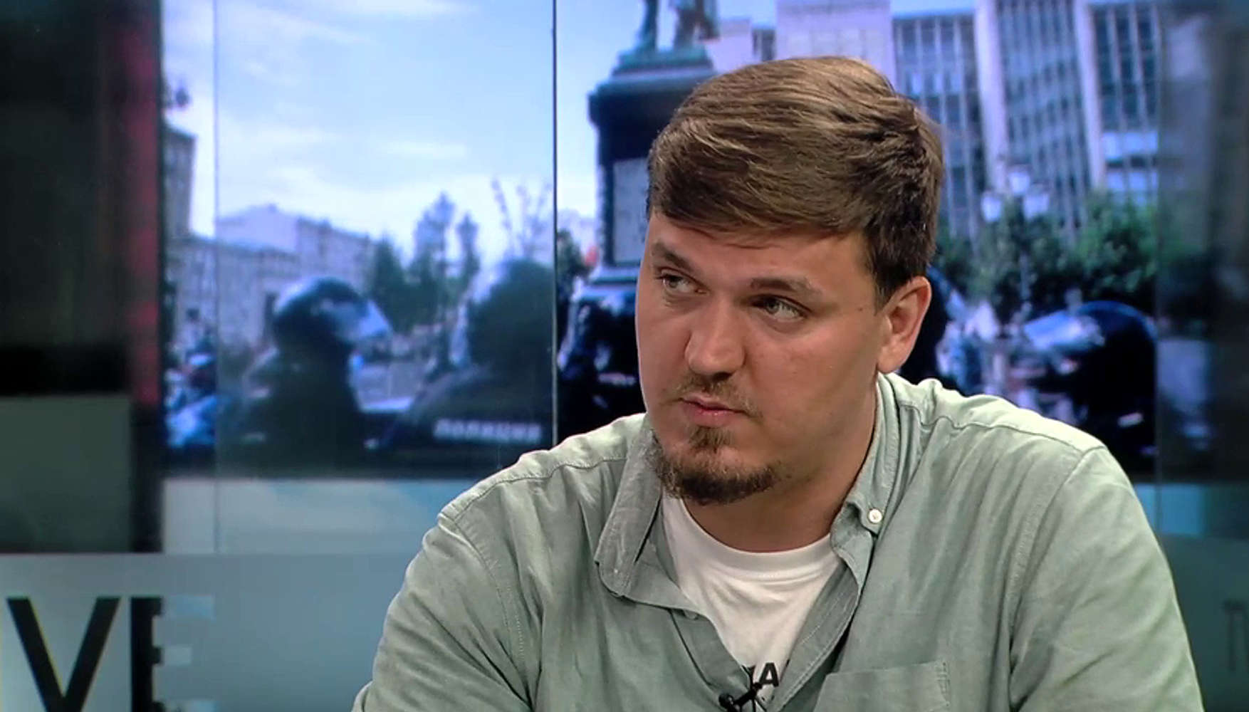 Как рассказал Полонский, они снимали акцию возле морга. Сначала через забор учреждения перелез неизвестный мужчина, но его остановили «вооруженные люди в форме без опознавательных знаков» и вдруг начали стрелять в воздух. Мужчина, стоя на коленях, попросил не убивать его, Полонский и Крестьянинов снимали все это на видео.