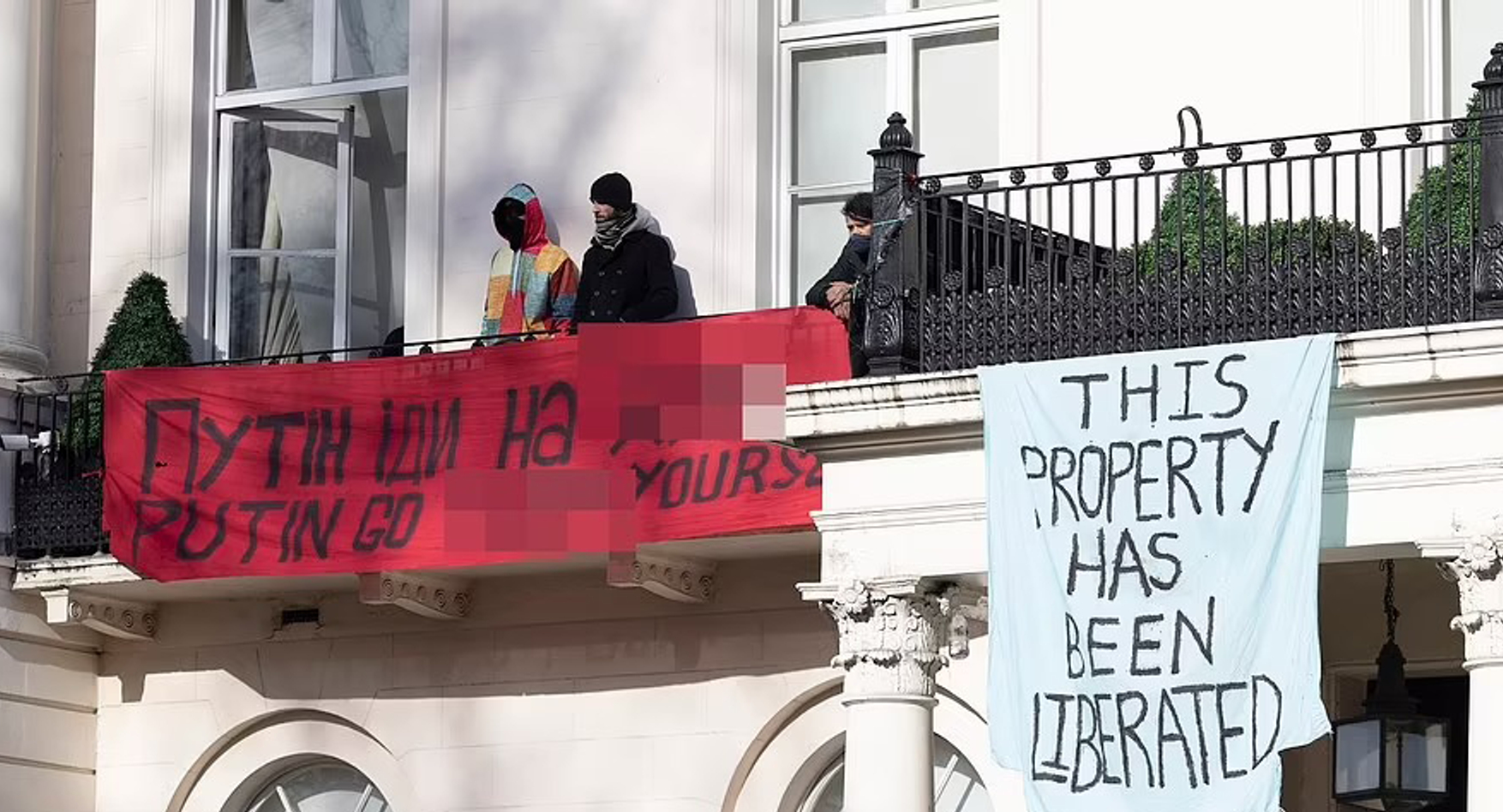 Активисты захватили лондонский особняк российского олигарха Олега Дерипаски стоимостью £50 млн. Они ворвались в здание на Белгрейв-сквер 5 в полночь по местному времени, и повесили на его фасад украинский флаг и транспаранты с надписями «Имущество освобождено» и «Путин, иди на х*й». Активисты планируют открыть особняк, в котором, по их словам, «слишком много комнат, включая кинозал и винный погреб», для украинских беженцев и тех, кто нуждается в убежище.