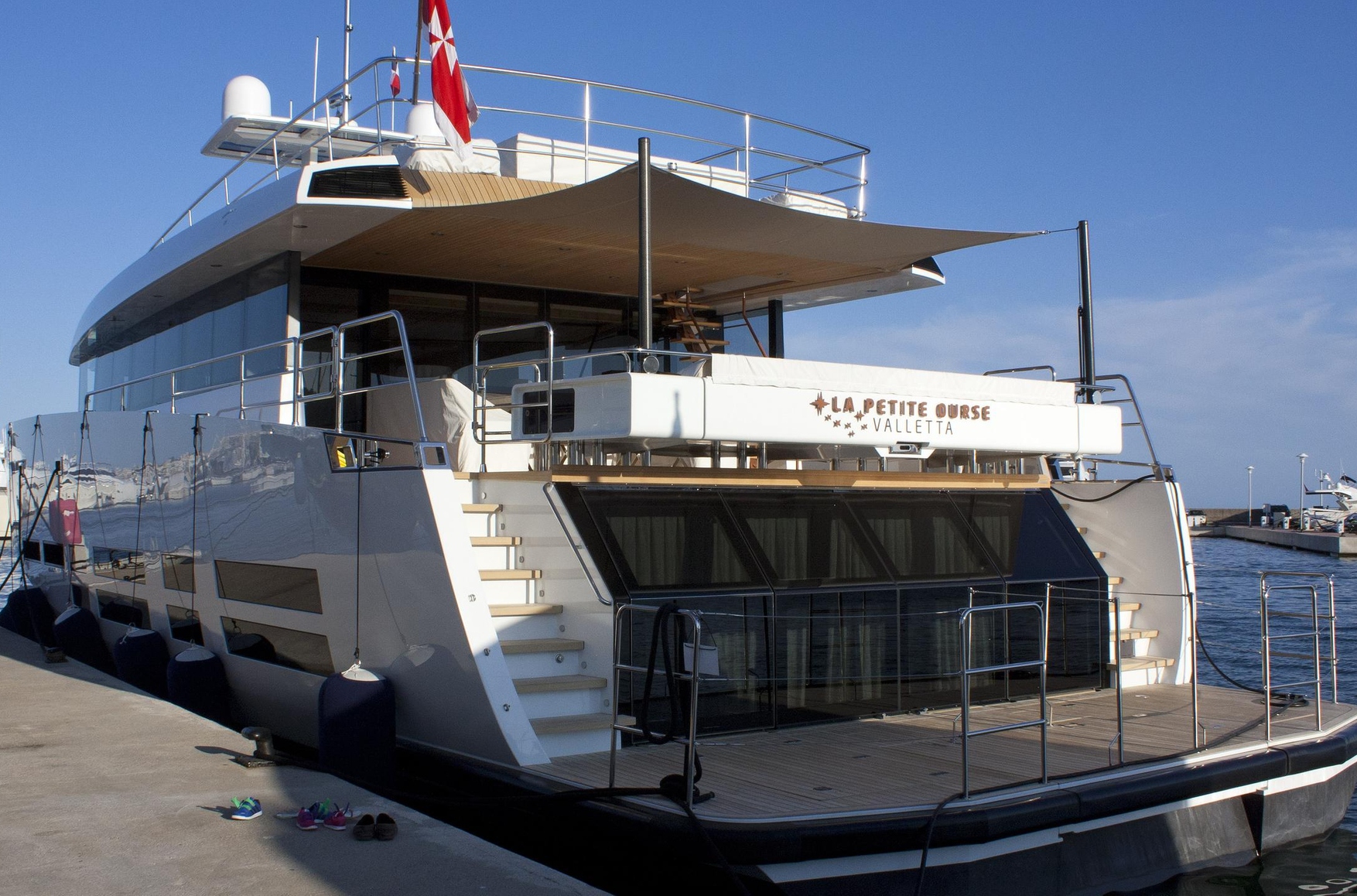 Одна из яхт, 17-метровая La Petite Ourse стоимостью €20 млн, пришвартована в Каннах, а другая — La Grande Ourse длиной 26 метров и стоимостью около €70 млн — на верфи в Антибах.