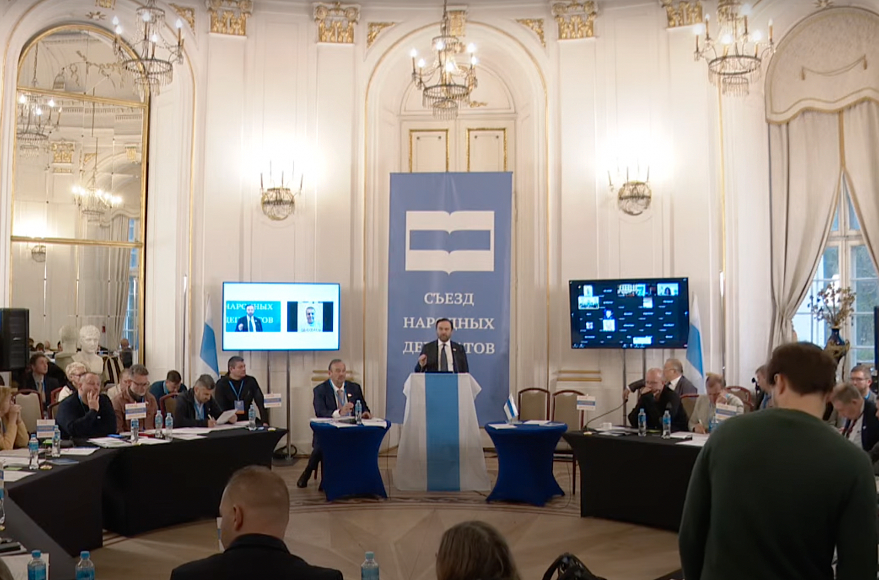 В польской Яблонне проходит «Съезд Народных Депутатов», среди организаторов которого российские оппозиционеры Илья Пономарев, Геннадий Гудков и Марк Фейгин. Экс-депутаты Госдумы до 7 ноября будут обсуждать, различные проекты политических изменений, например определять критерии для списка люстраций и принципы формирования «Правительства национального единства». В первый день заседания собравшиеся обсуждали среди прочего следует ли убивать Владимира Путина. Также выступающие заявили, что Путин и Госдума лишены легитимности, и единственные у кого она осталась - это присутствующие на заседании депутаты.