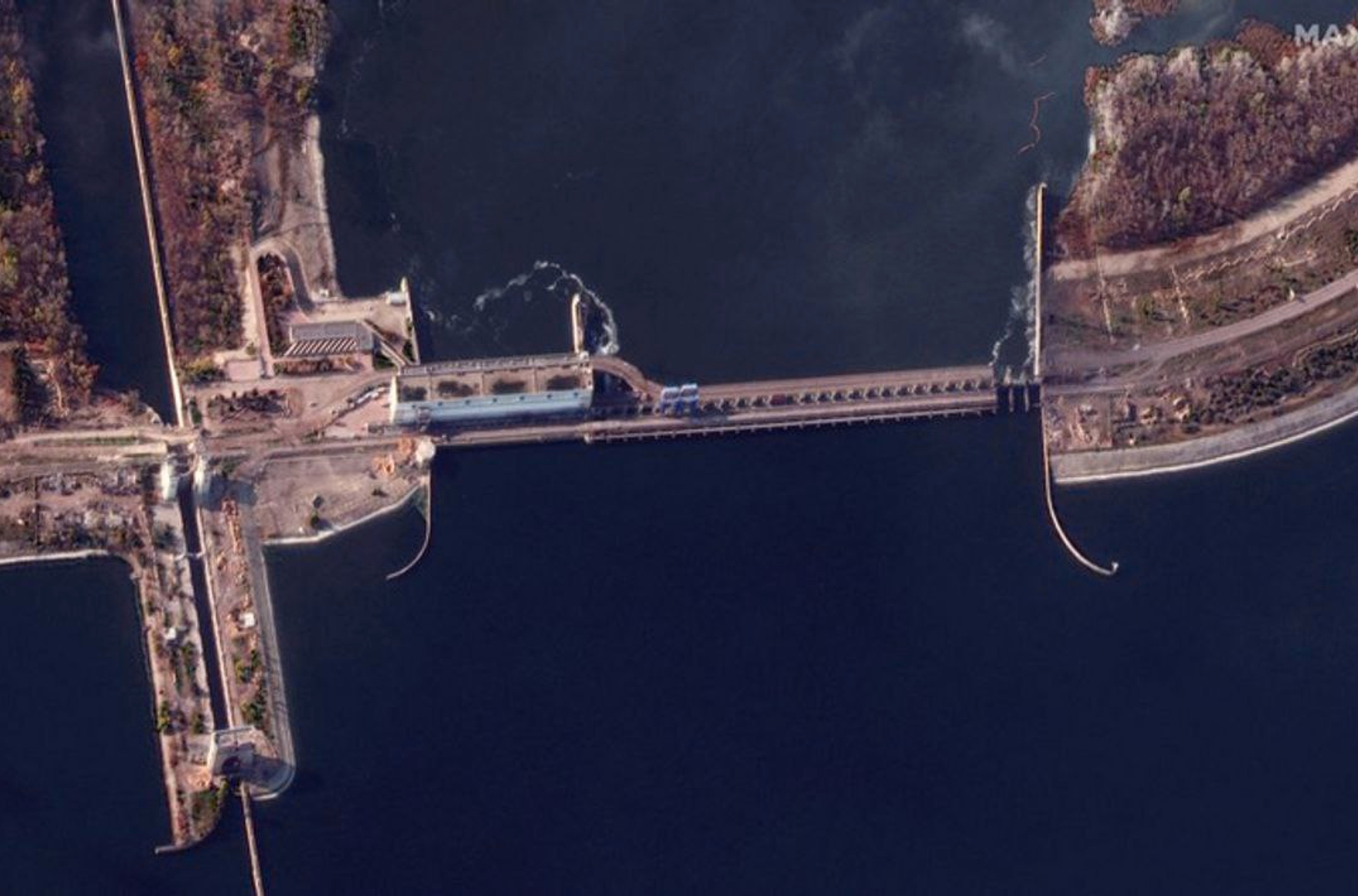 Американская компания Maxar 11 ноября опубликовала спутниковые снимки моста на Каховской ГЭС и Дарьевского моста через реку Ингулец. Согласно снимкам, несколько пролетов моста на гидроэлектростанции отсутствуют. Телеканал CNN сообщил, что дамба через Днепр повреждена, вода вытекает из трех шлюзовых ворот. По данным канала, последние взрывы на дамбе произошли 10 ноября после отступления российских войск.
