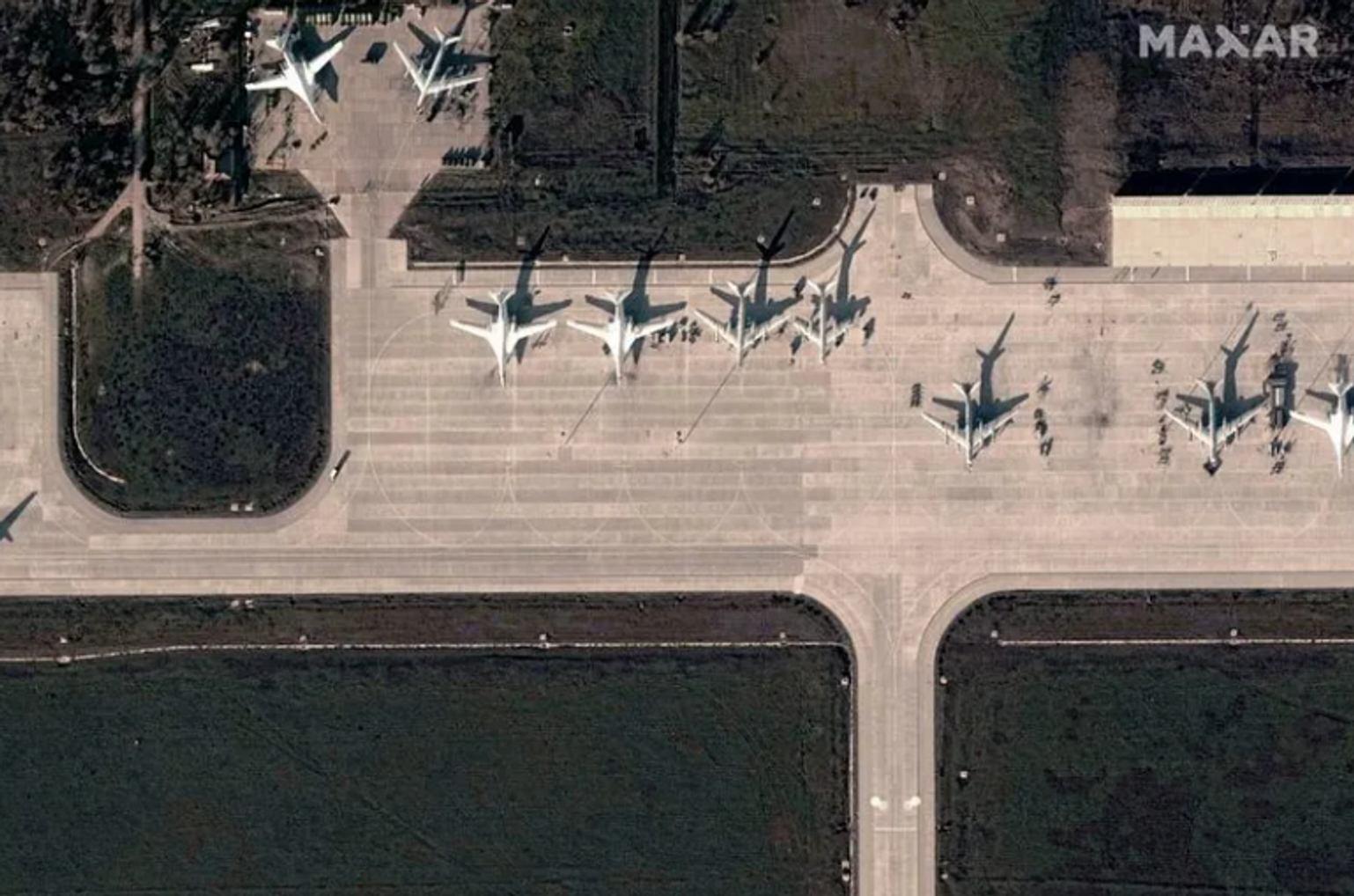 OSINTtechnical пишет, что пожар произошел на месте парковки самолетов: