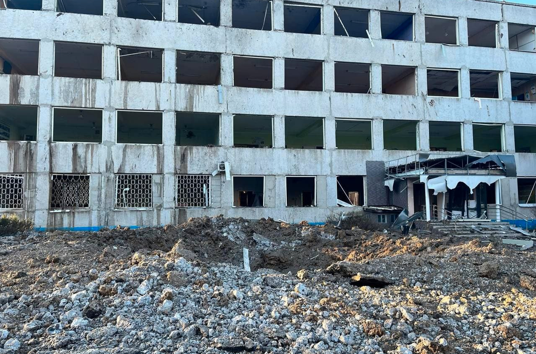 Краматорский горсовет опубликовал фотографии с места обстрела. На них видно, что снаряды прилетели не в здания училища и общежитий, а рядом с ними.