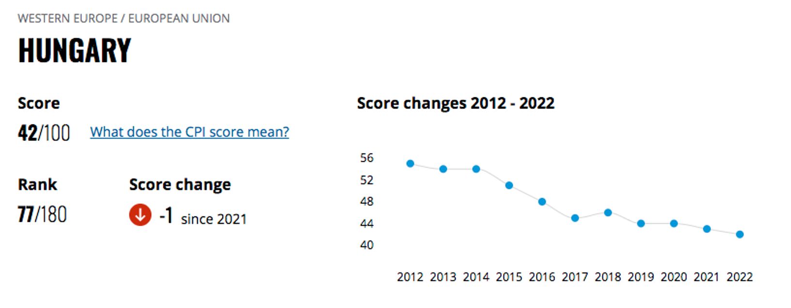 С тех пор, как премьер-министр Венгрии Виктор Орбан вернулся к власти в 2010 году, страна опустилась в Индексе восприятия коррупции на 24 строчки.