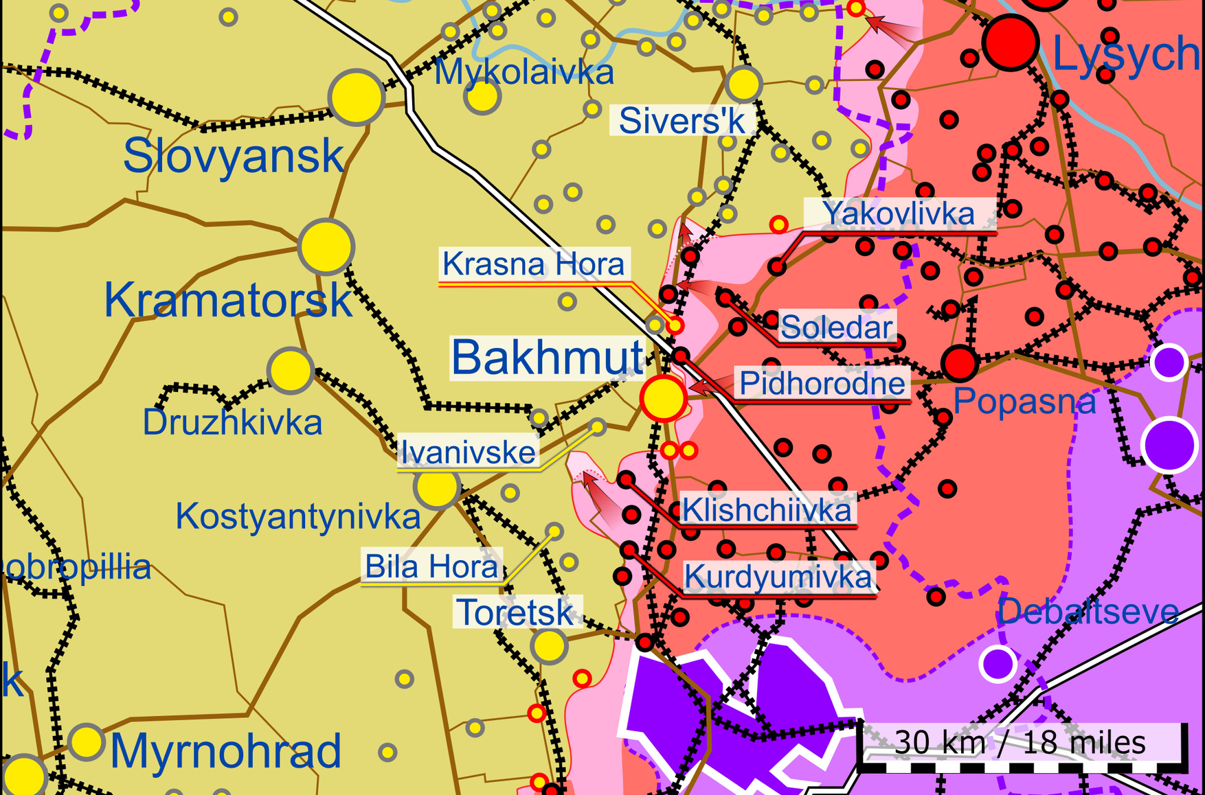 На 342-й день войны в Украине российские войска продолжают продвигаться на север и на юго-запад от Бахмута. Карту, отражающую обстановку на фронте, публикует проект War Mapper в Twitter-аккаунте. Минобороны Британии со ссылкой на разведку сообщило, что целью наступления ВС России на Угледарском направлении является отвлечение украинских сил от Бахмута. Российской группировке удалось продвинуться на несколько сотен метров, однако сил для оперативного прорыва на этом направлении у нее нет.