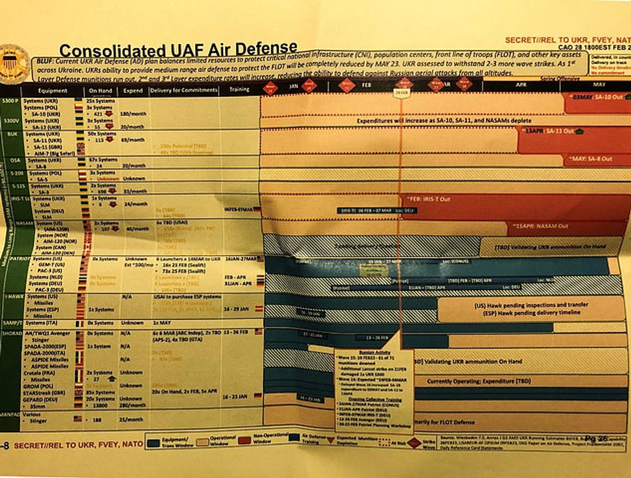 Секретная информация, которая была слита за пределы группы в Discord, включала в себя сведения и прогнозы американских военных относительно войны в Украине. В частности, в документах можно было найти информацию о том, что Сербия согласилась поставлять Украине оружие. Также в них содержатся прогнозы относительно хода войны, информация о поставках оружия, прослушке лидеров государств и многое другое.