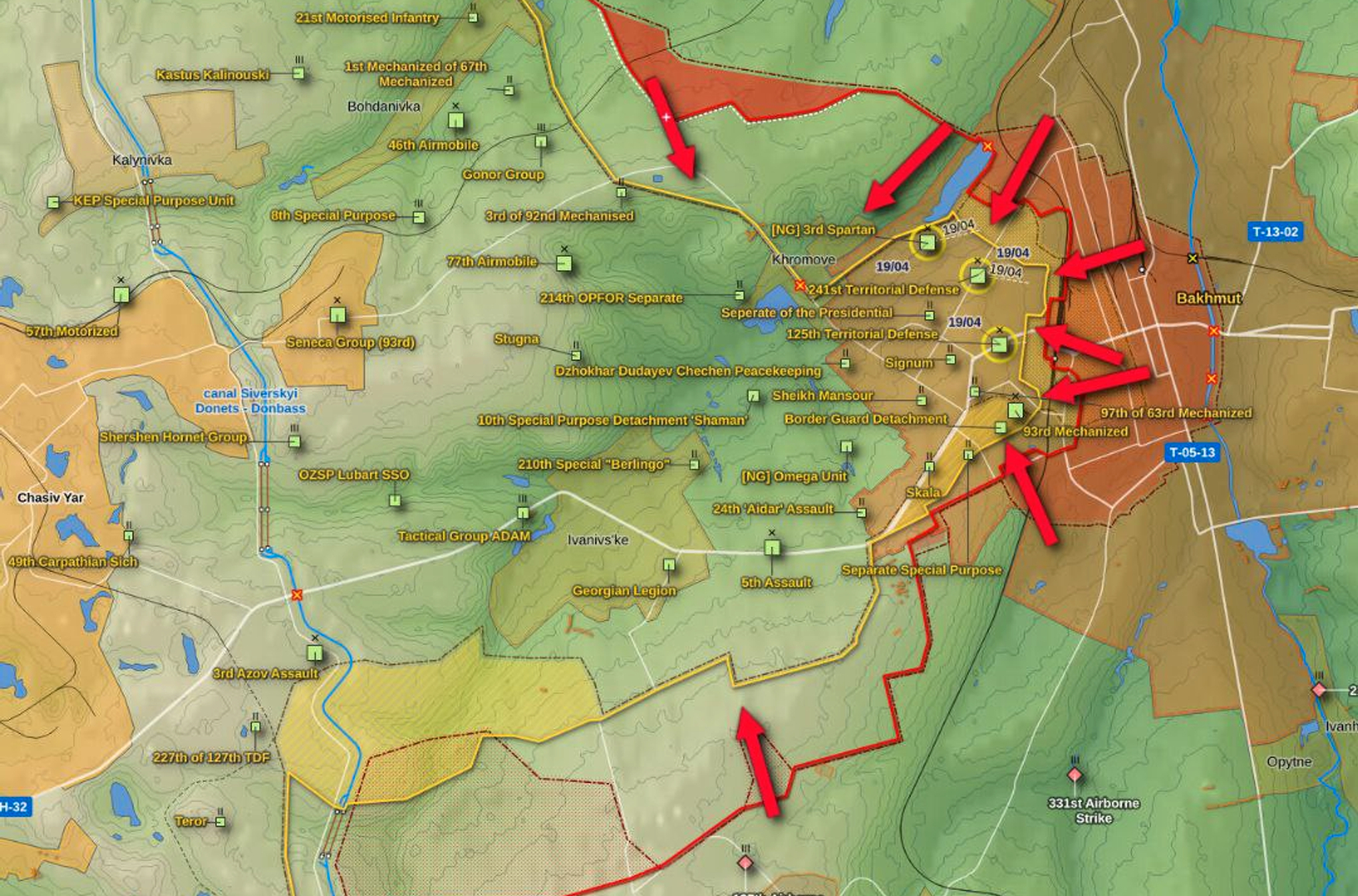 В пророссийских Telegram-каналах распространяется информация о фактическом завершении оперативного окружения Бахмута: вагнеровцы, как сообщается, перерезали «дорогу жизни» между Бахмутом и Часовым Яром через Хромово, установив над ее участком физический контроль.