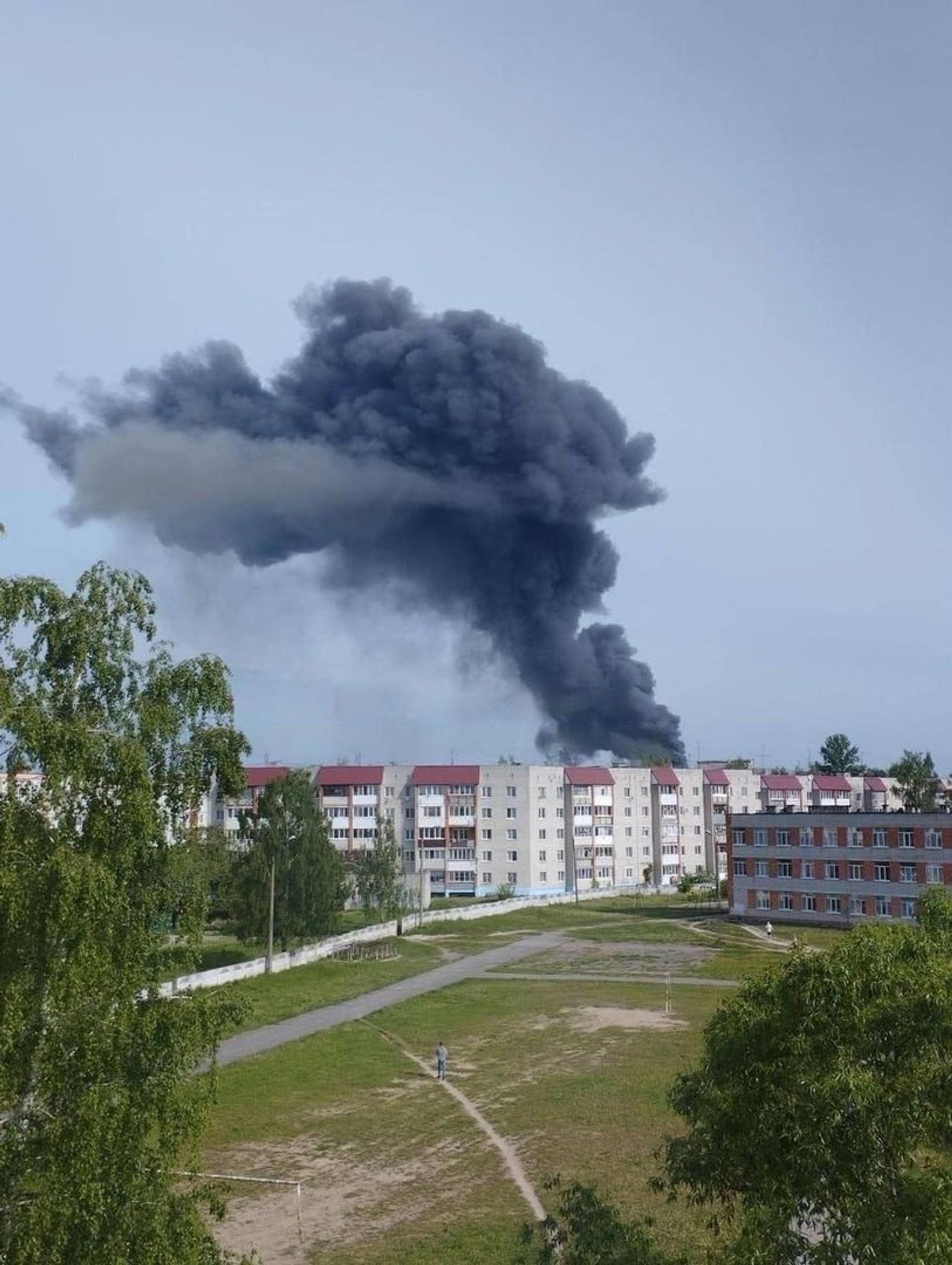 В городе Дятьково Брянской области сильный пожар, пишет Telegram-канал Shot, публикуя фото. Клубы черного дыма видны за несколько километров от места возгорания. По предварительной информации, горит склад на территории бывшего завода.