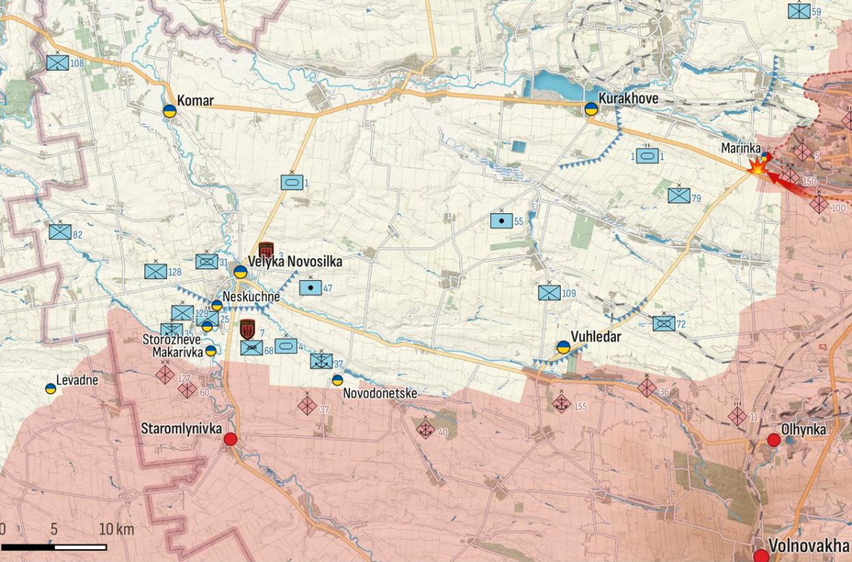 Как сообщил представитель Генштаба ВСУ Андрей Ковалев, на Бердянском направлении бои идут в районе населенного пункта Макаровка, а также сел Новоданиловка и Новопокровка Запорожской области. По его словам, на Бахмутском направлении ВСУ вели успешные штурмовые действия в районах Раздоловка — Краснополовка и Берховка — Ягодное.
