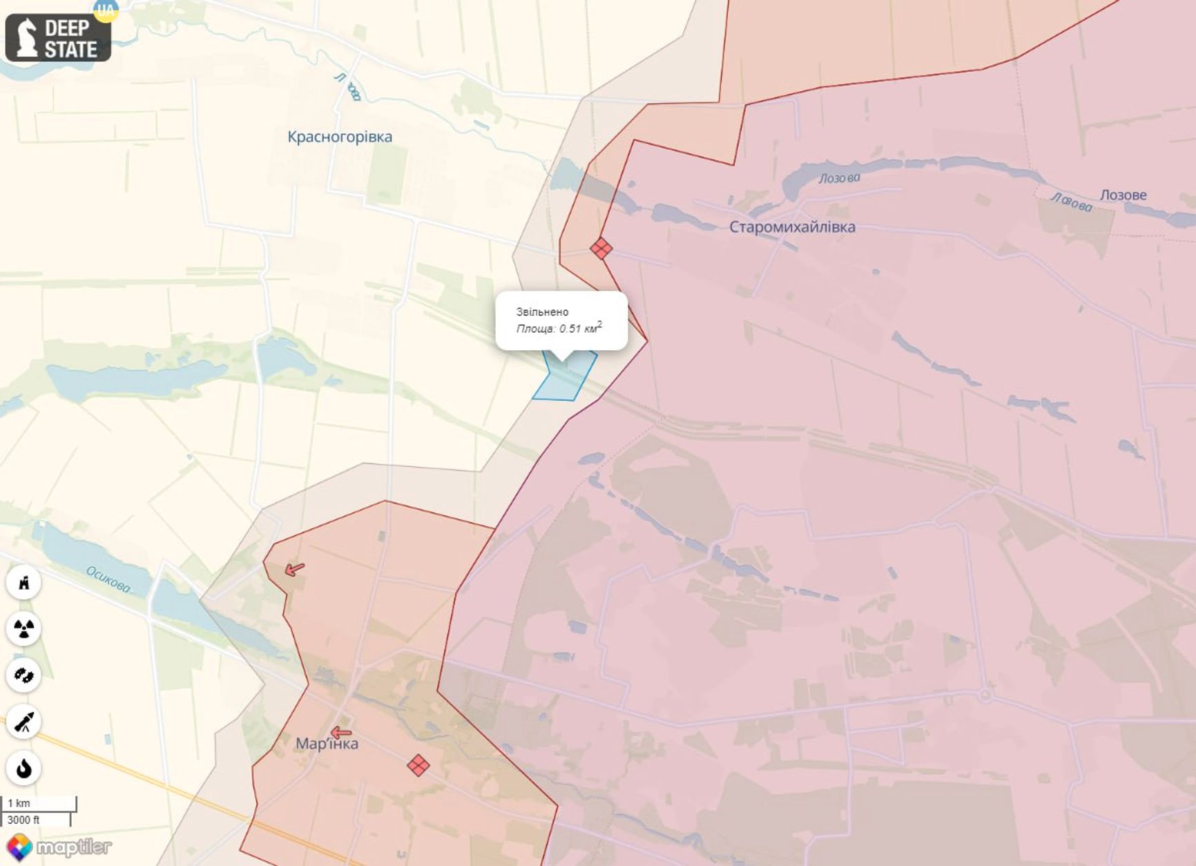 Украинский OSINT-проект InformNapalm сообщил, что украинские военные впервые смогли отбить часть территории, оккупированной еще в 2014 году близ Марьинки в Донецкой области.