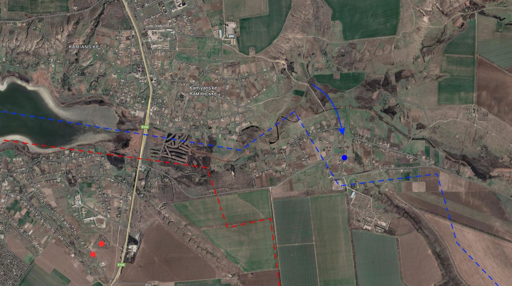Аналитик Def Mon сообщает о продвижении ВСУ под Каменским. Он отмечает, что им удалось пересечь безымянную «реку», которая после подрыва плотины Каховской ГЭС «больше похожа на пересохшую канаву». Тем не менее, зимой она служила линией разграничения между российскими и украинскими войсками.