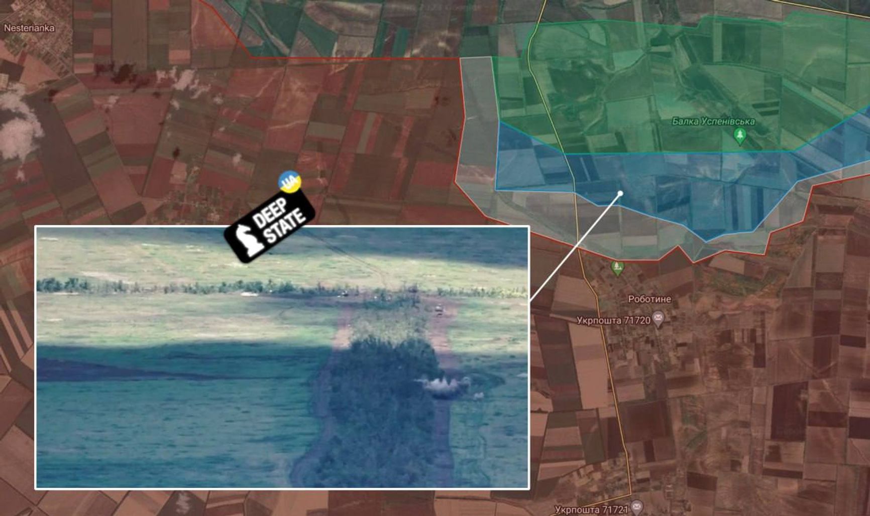 Украинский OSINT-ресурс DeepState геолоцировал место обстрела украинских позиций всего в 1300 метрах от окраин Работино.