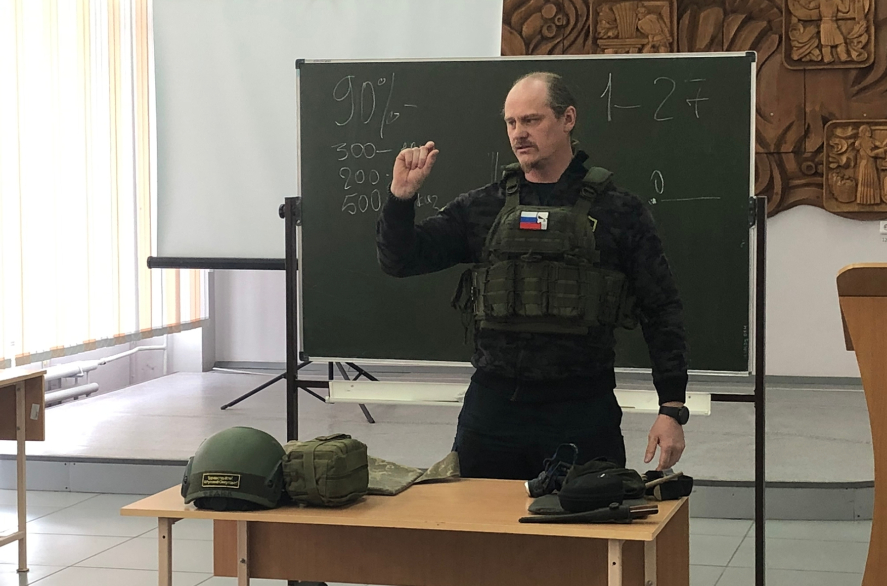 Сейчас священник Дорогобид встречается со студентами в колледжах Братска и показывает им военное обмундирование, а также учит «тактике ведения боя».