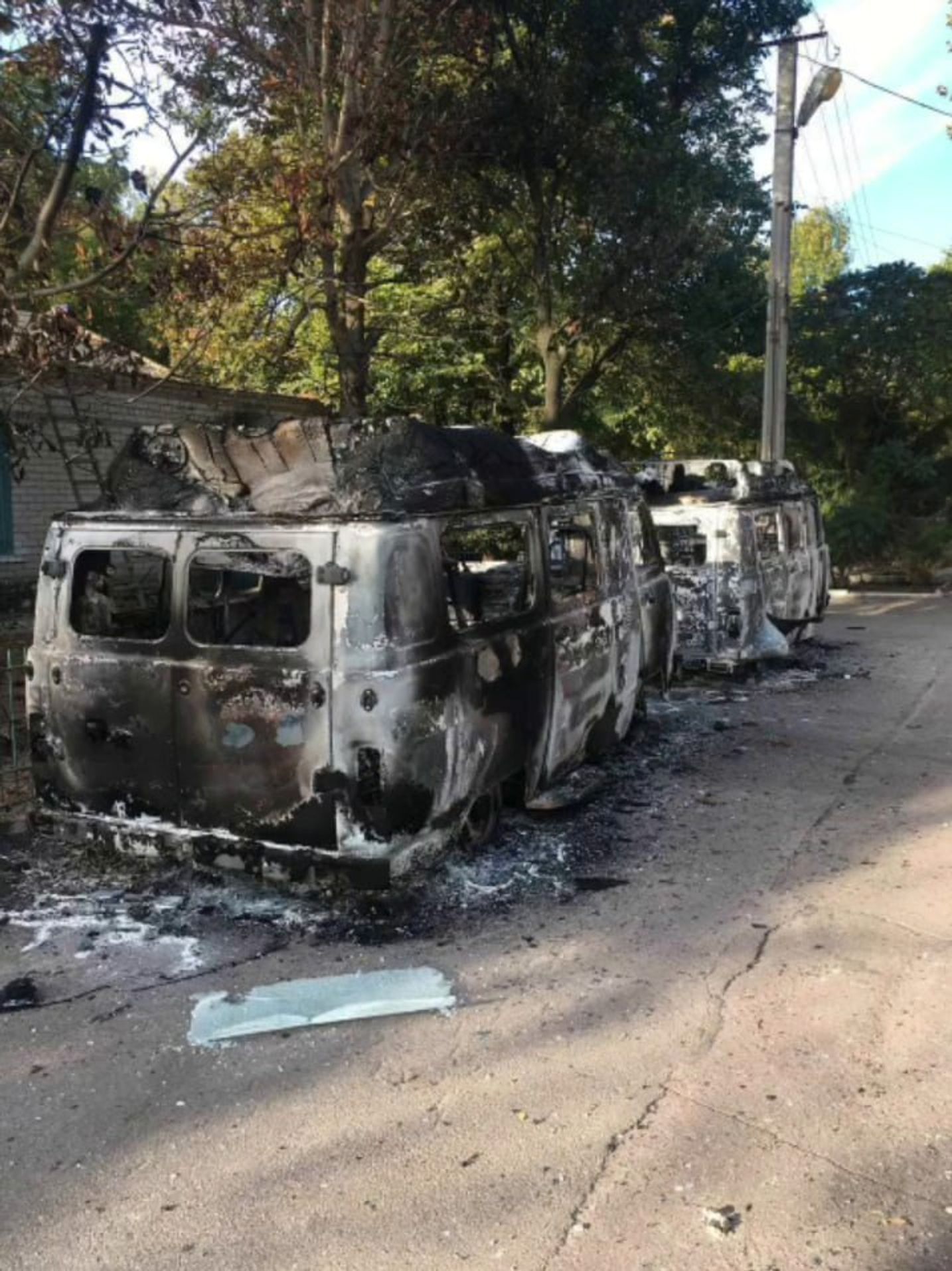 «Военкор» Юрий Котенок пишет об обстреле оккупированных Олешек. Отмечается прилет по стоянке автомобилей скорой помощи — сгорели восемь машин.