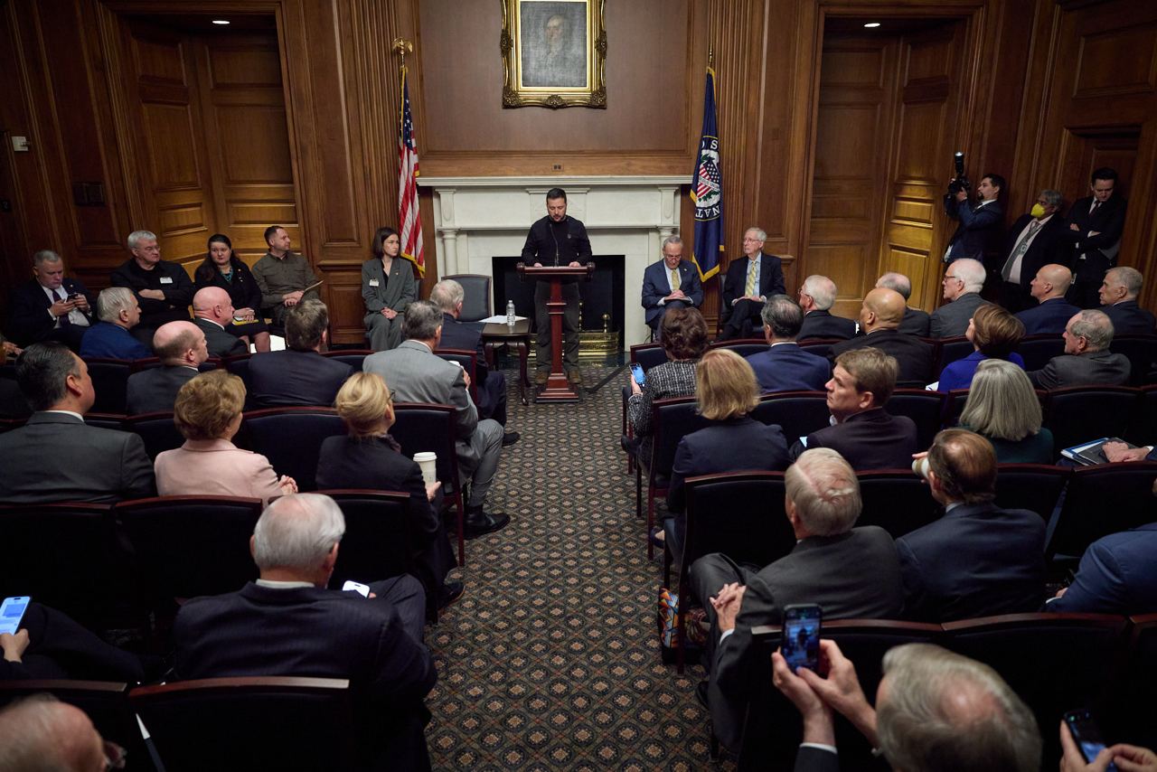 Владимир Зеленский выступил в Сенате Конгресса США, где, по его словам, рассказал сенаторам об актуальной экономической ситуации в Украине и жизненной необходимости сохранения американской поддержки.