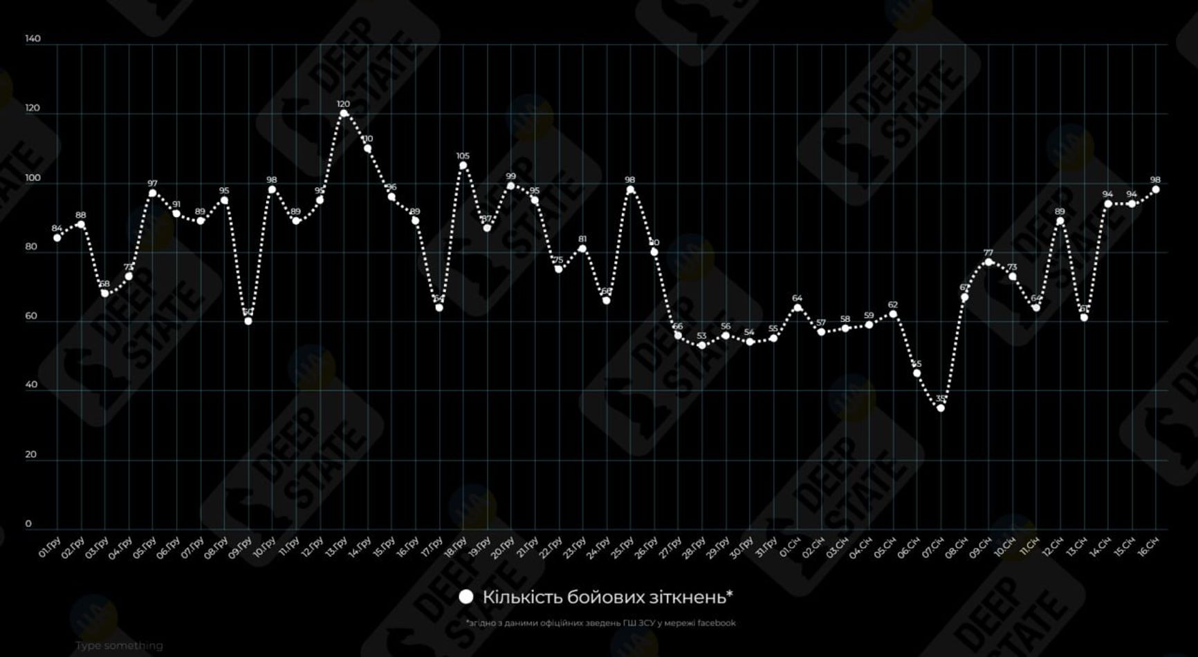 DeepState — украинский проект, поддерживающий регулярно обновляемую карту контроля территорий в зоне боевых действий в Украине и публикующий сводки о ситуации на фронте на основе открытых источников (OSINT) и информации от украинских военных.
