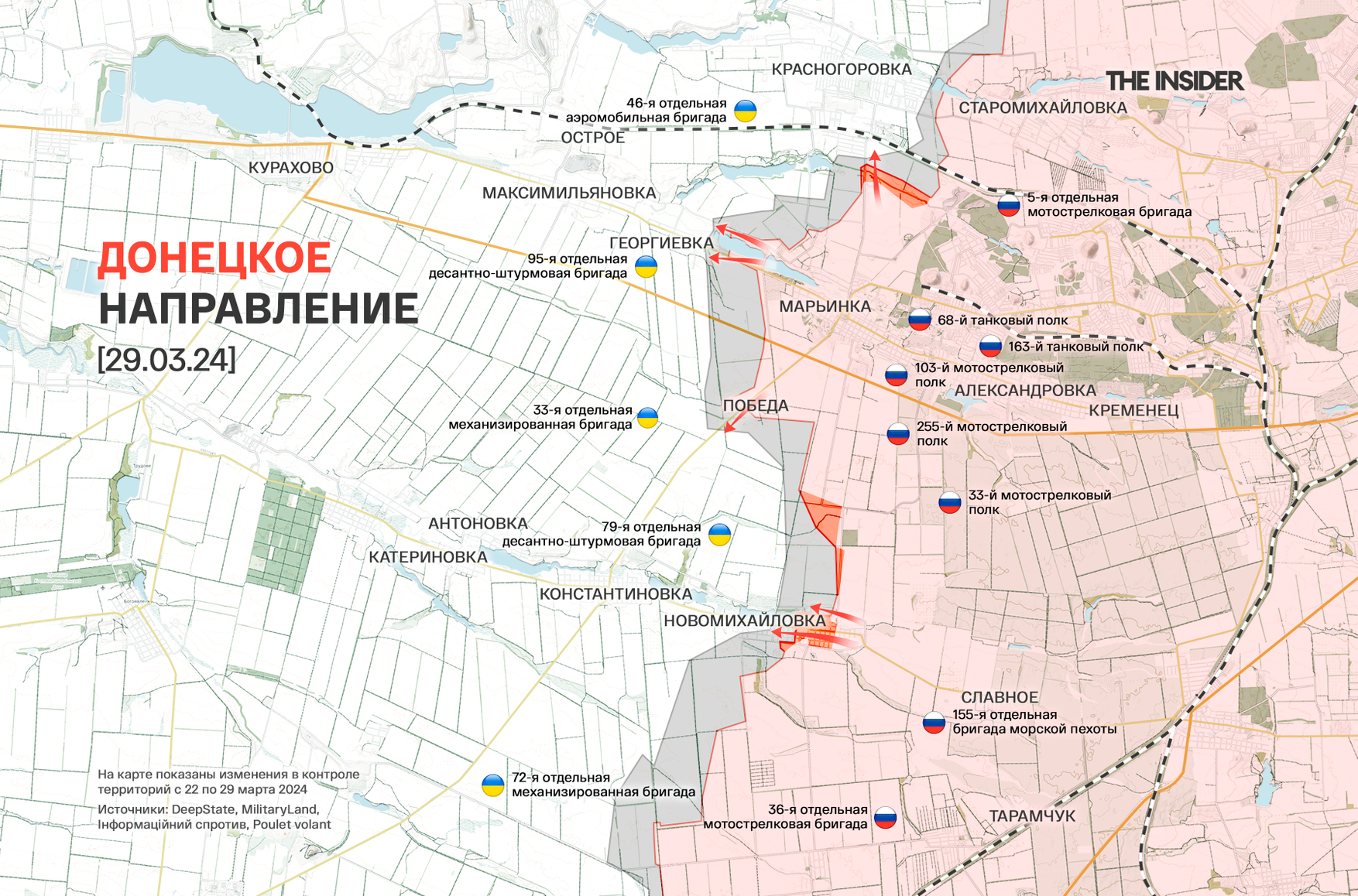 - ISW — с 1 января по 28 марта 2024 года ВС РФ заняли 100 км² украинской территории;