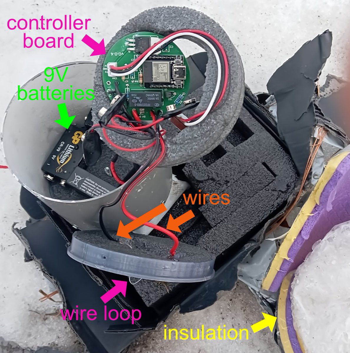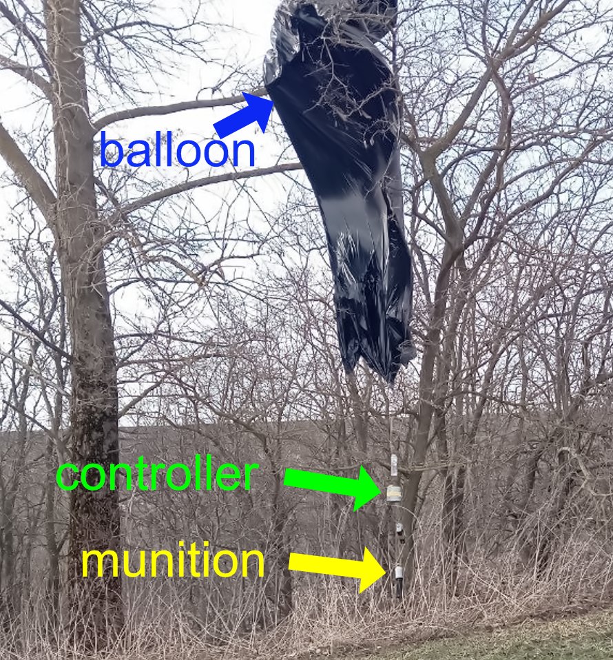Украина использует недорогие аэростатные технологии в сочетании с современной электроникой для ударов по территории РФ, пишет исследователь DanielR. Он публикует фотографии одного из таких «ударных шаров» и объясняет его техническое устройство. Шар представляет собой длинный черный цилиндр, наполненный гелием или водородом. Полезная нагрузка распределяется по струне под воздушным шаром. На фото показано, где находится бутылка с зажигательной смесью, за которой следует контейнер с электроникой контроллера. Далее следует устройство слежения. В самом низу — боеприпас.