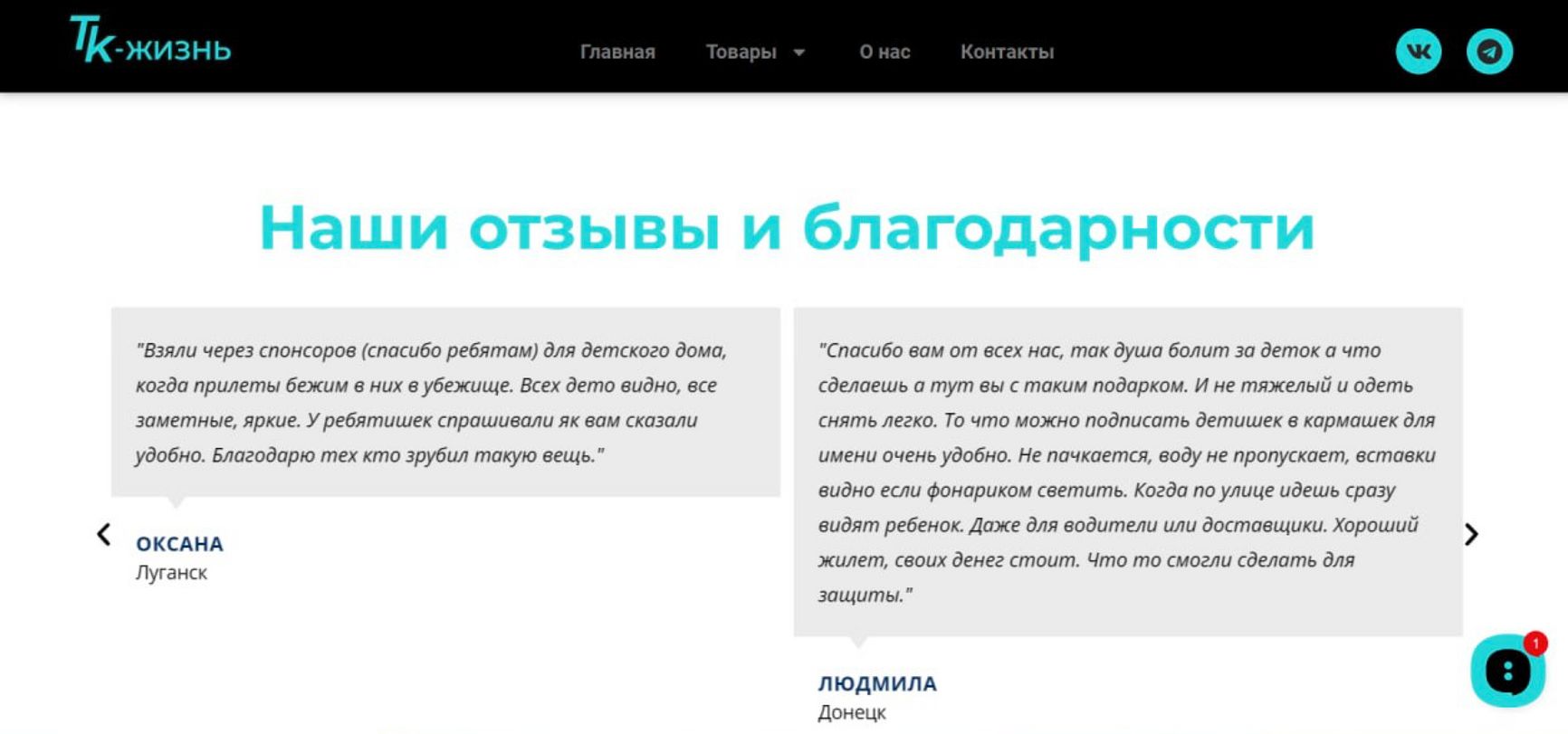 «Взяли через спонсоров для детского дома, когда прилёты, бежим в них в убежище. У ребятишек спрашивали як вам, сказали удобно. Благодарю тех кто зрубил такую вещь» — Оксана, Луганск.