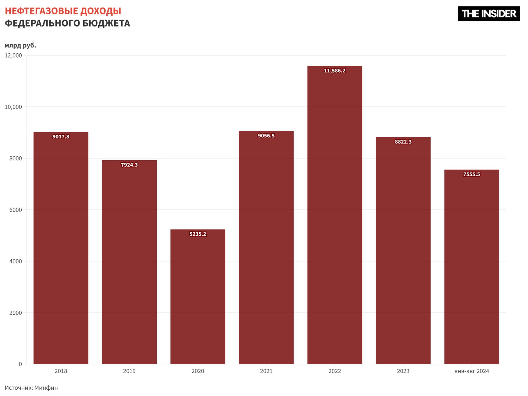 Всего за восемь месяцев доходы бюджета составили 23,29 трлн рублей, расходы — 23,36 трлн рублей. Треть доходов по-прежнему обеспечивает добыча нефти и газа, нефтегазовые доходы составили 7,555 трлн рублей. И это на 56% выше, чем в тот же период 2023 года. Причина — рост цены на российскую нефть и обход нефтяных санкций. Прочие доходы увеличились на 27,3% по сравнению с аналогичным периодом прошлого года.