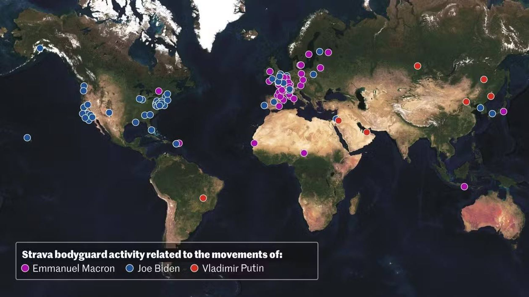 Strava — приложение для бегунов, велосипедистов, любителей походов и пеших прогулок, которое позволяет делиться информацией о своей физической нагрузке. Приложение записывает, в том числе, местоположение пользователя. Журналисты обнаружили, что сервисом пользовались по меньшей мере шесть сотрудников Федеральной службы охраны (ФСО), которые сопровождают Путина в поездках.