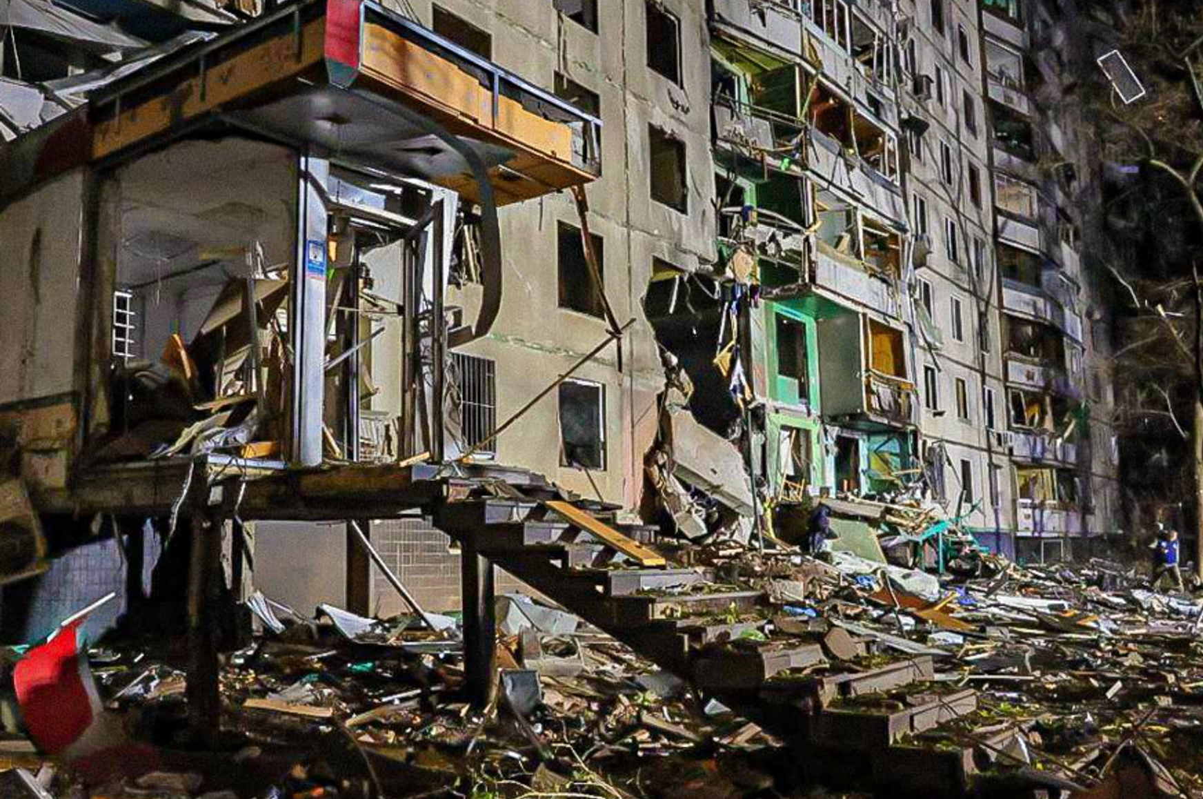 В Салтовском районе бомба попала в многоэтажный дом. В результате был частично разрушен подъезд с первого по третий этаж. Ранены 25 человек, пять из которых госпитализированы в среднем и легком состоянии. 30 жителей дома, включая четверых детей, были эвакуированы.