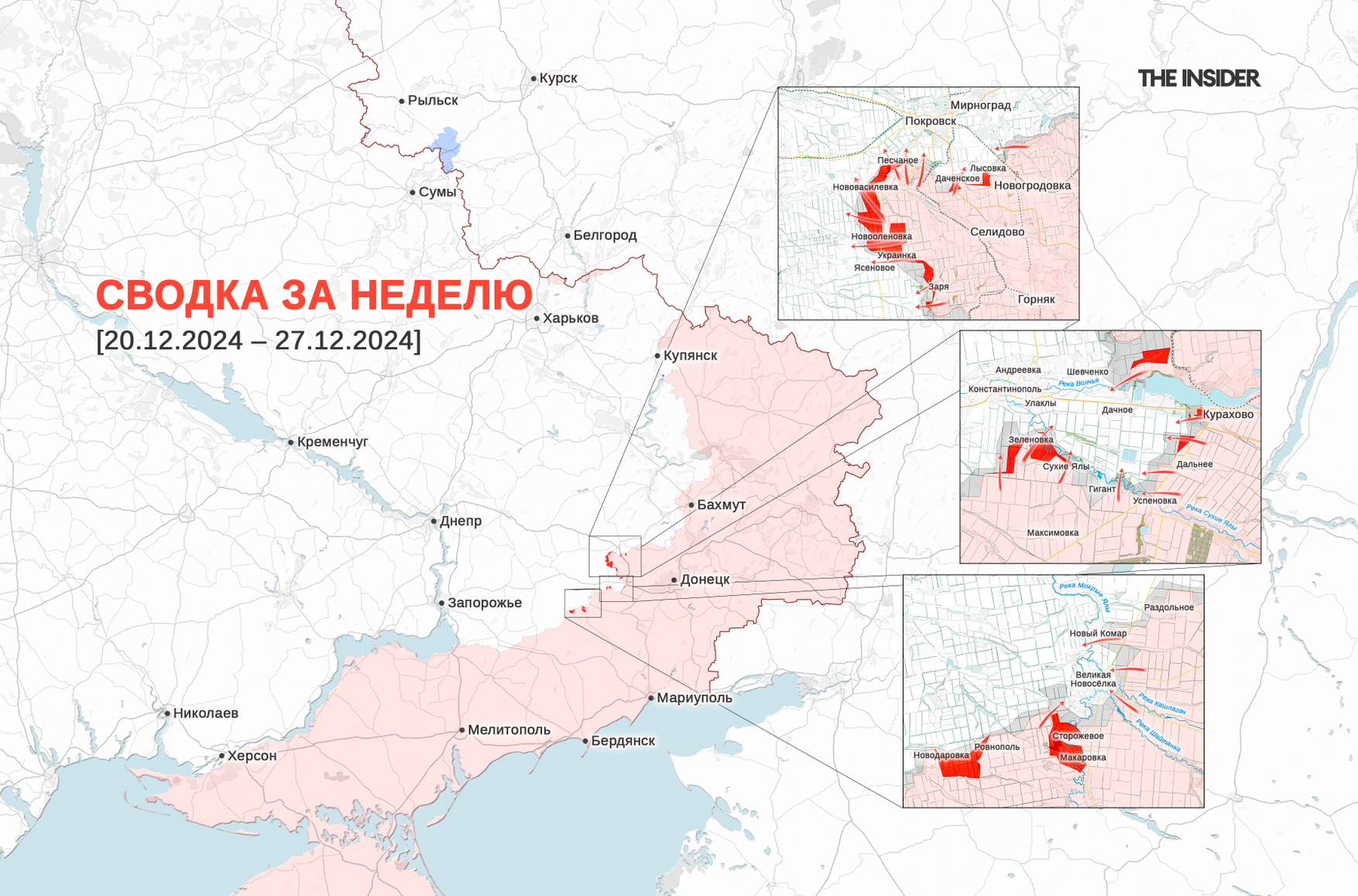 Предыдущая недельная сводка (с 14 по 20 декабря 2024 года): Северокорейцы штурмуют позиции ВСУ в Курской области, ВС РФ пытаются создать «мешок» в Курахове. Что происходило на фронте на этой неделе