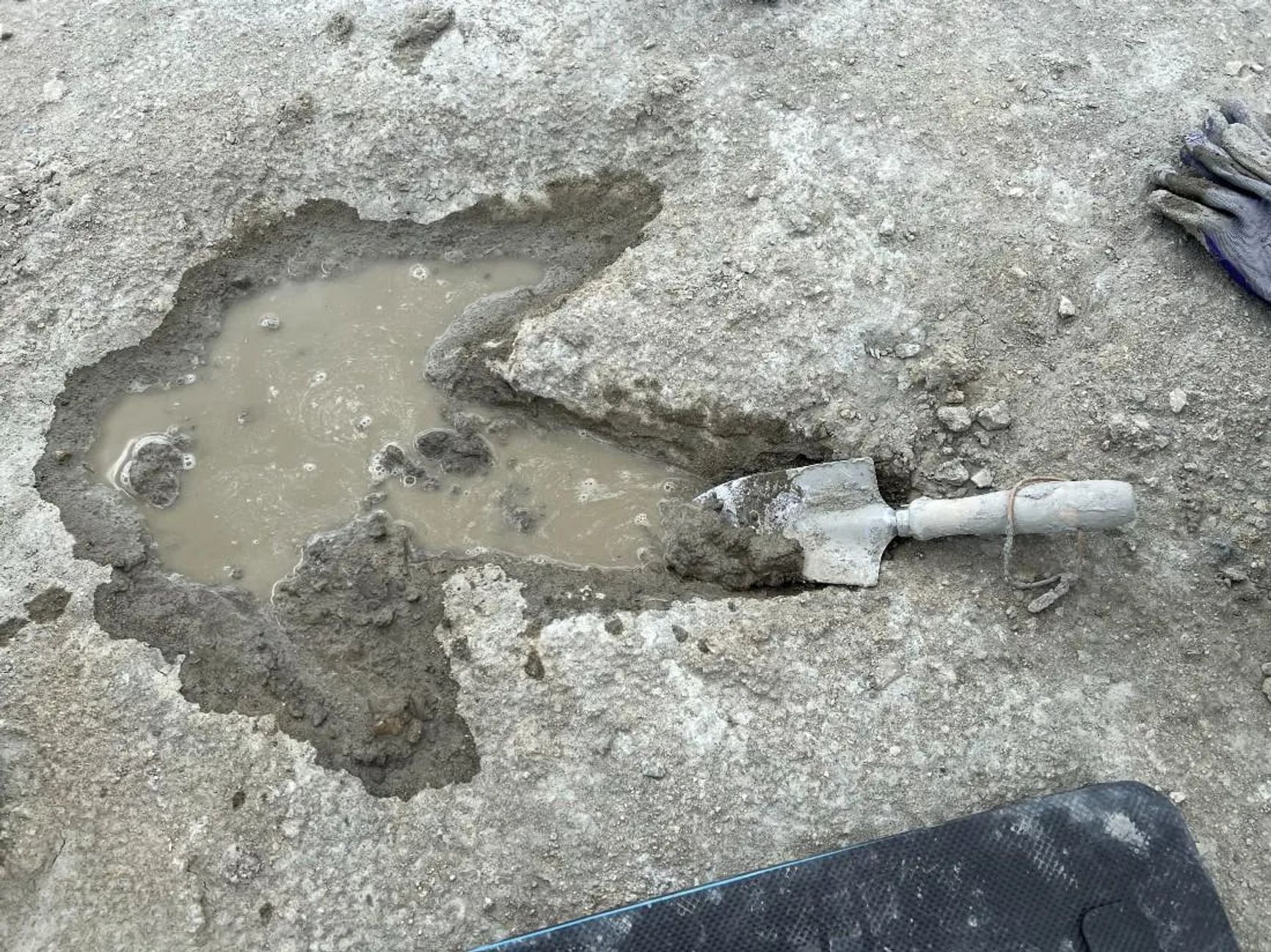 Отпечатки были погребены под грязью, но обнаружились, когда работник карьера Гэри Джонсон заметил непонятные бугорки и вызвал экспертов. Управляющий карьером связался со специалистами, и университеты Оксфорда и Бирмингема совместно возглавили команду из более чем 100 человек. Раскопки длились неделю в июне 2024 года.