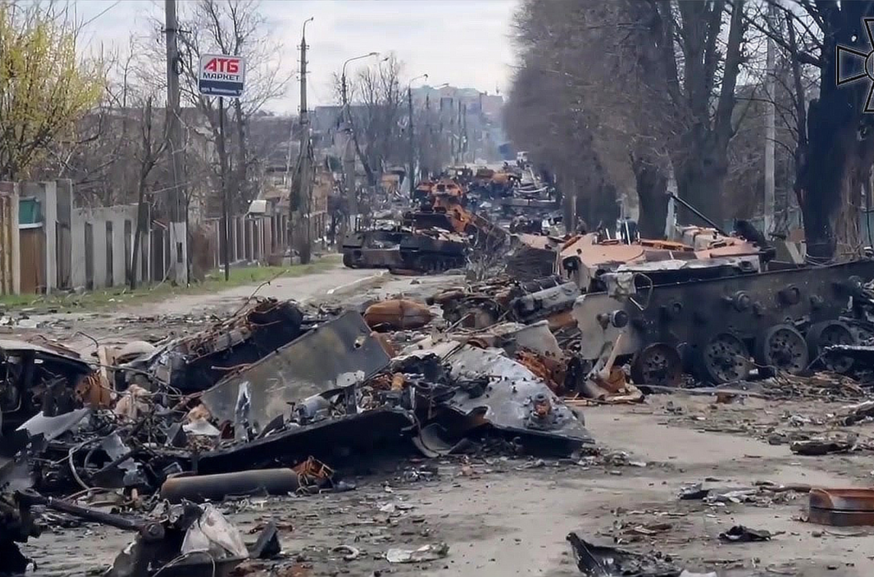 Фото: Сгоревшая техника ВС РФ на ул. Вокзальной. Буча, Киевская область, Украина