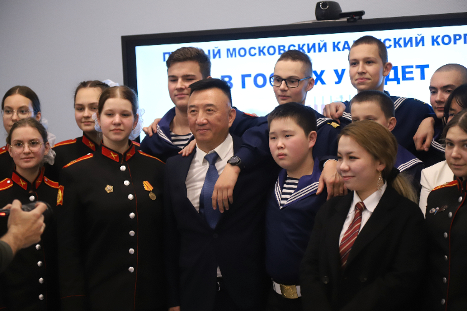 Лу Юйгуан с кадетами Первого Московского кадетского корпуса. Фото: «На западе Москвы»