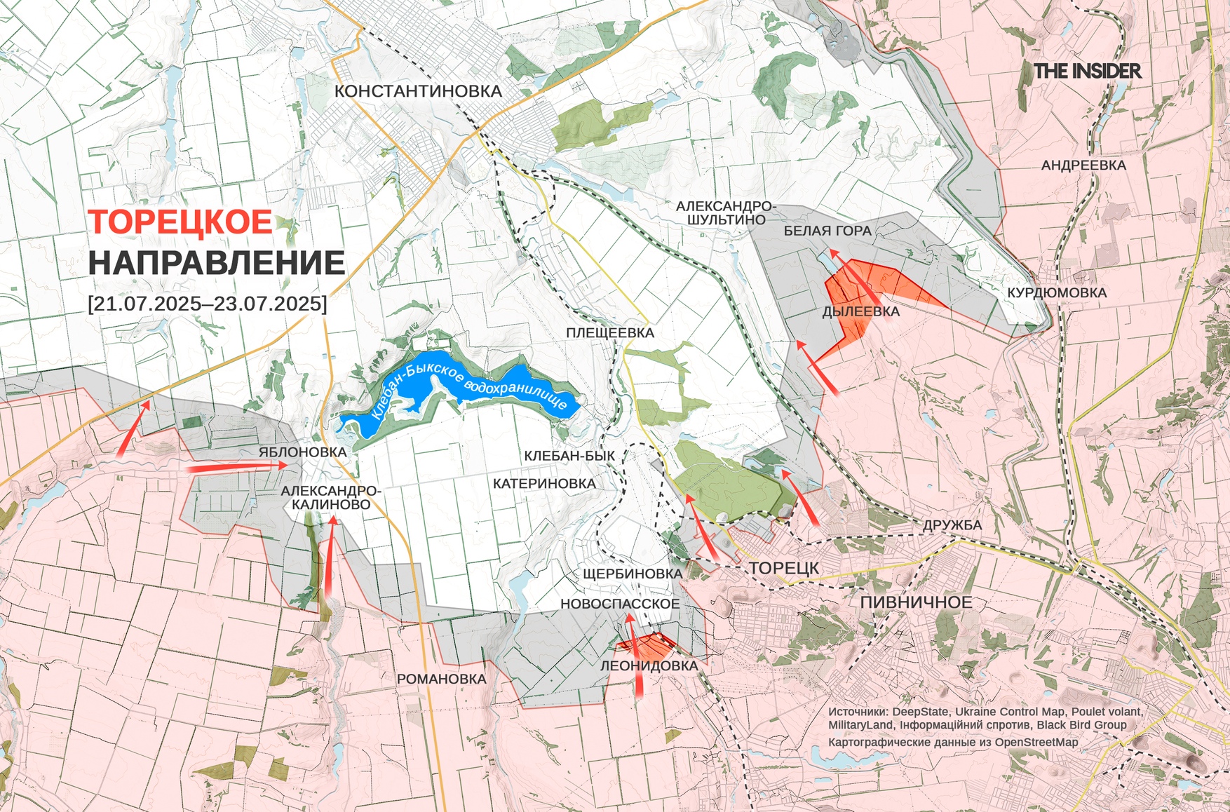 На торецком направлении российские войска продвигаются одновременно западнее и северо-восточнее Торецка (до 2016 года — Дзержинск).
