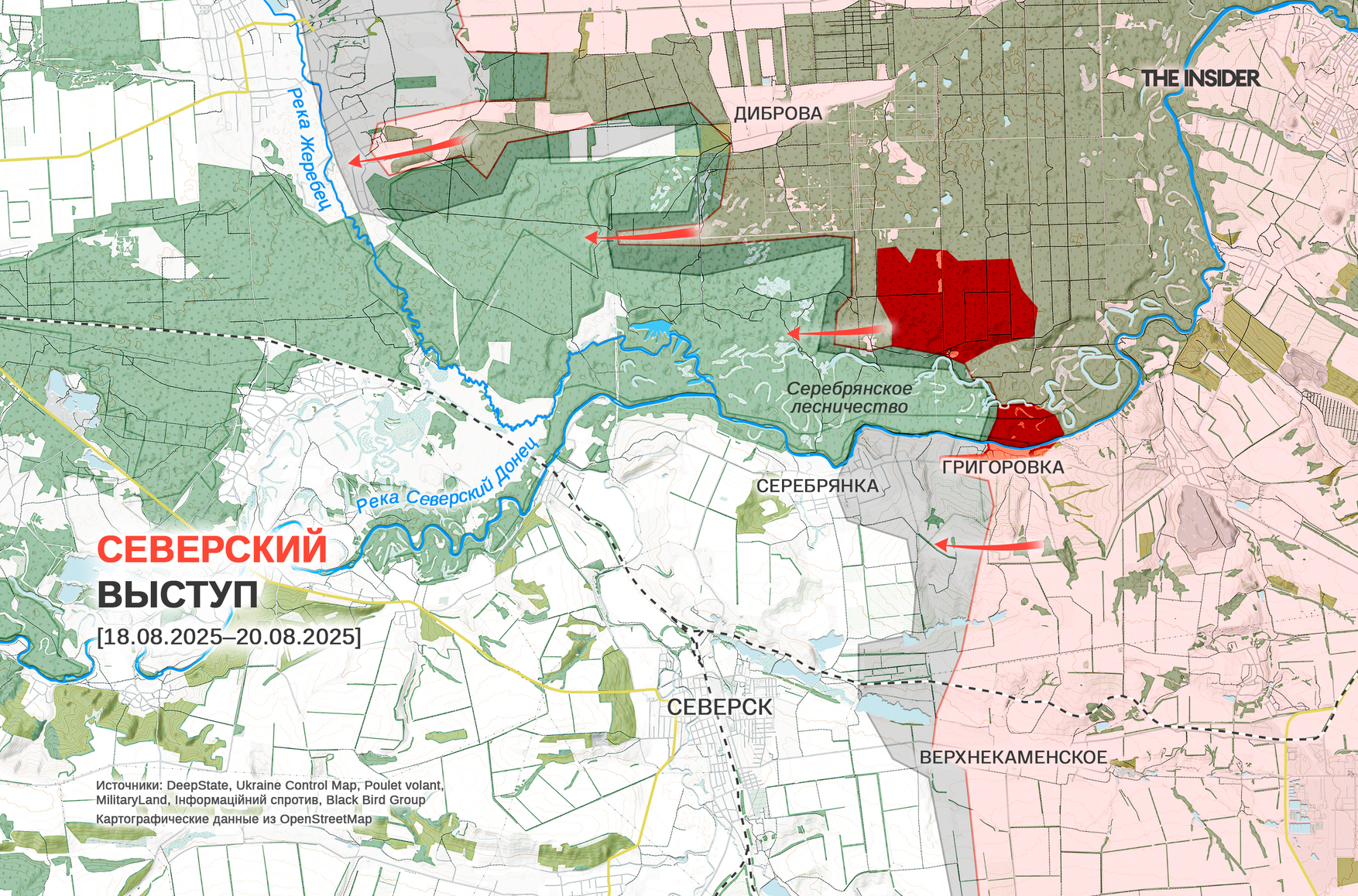 - На Северском выступе ВС РФ заняли «более 80%» площади Серебрянки на берегу реки Северский Донец