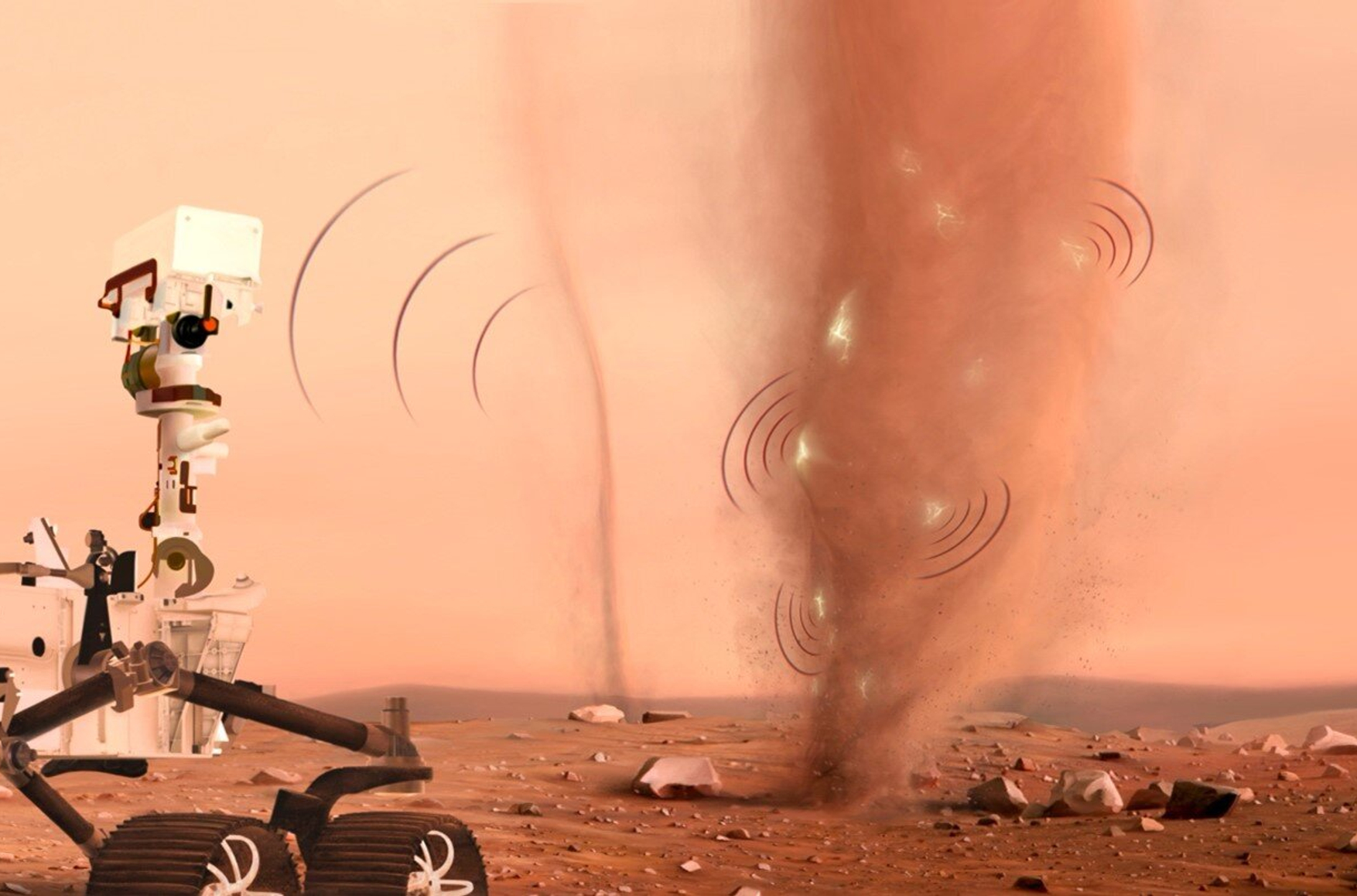 Прибор SuperCam марсохода Perseverance случайно записал необычно мощные сигналы в центре двух пылевых вихрей, которые оказались электромагнитными и акустическими следами разрядов, сопоставимых со статическим электричеством на Земле. Исследование, посвященное этому явлению, опубликовано в журнале Nature.
