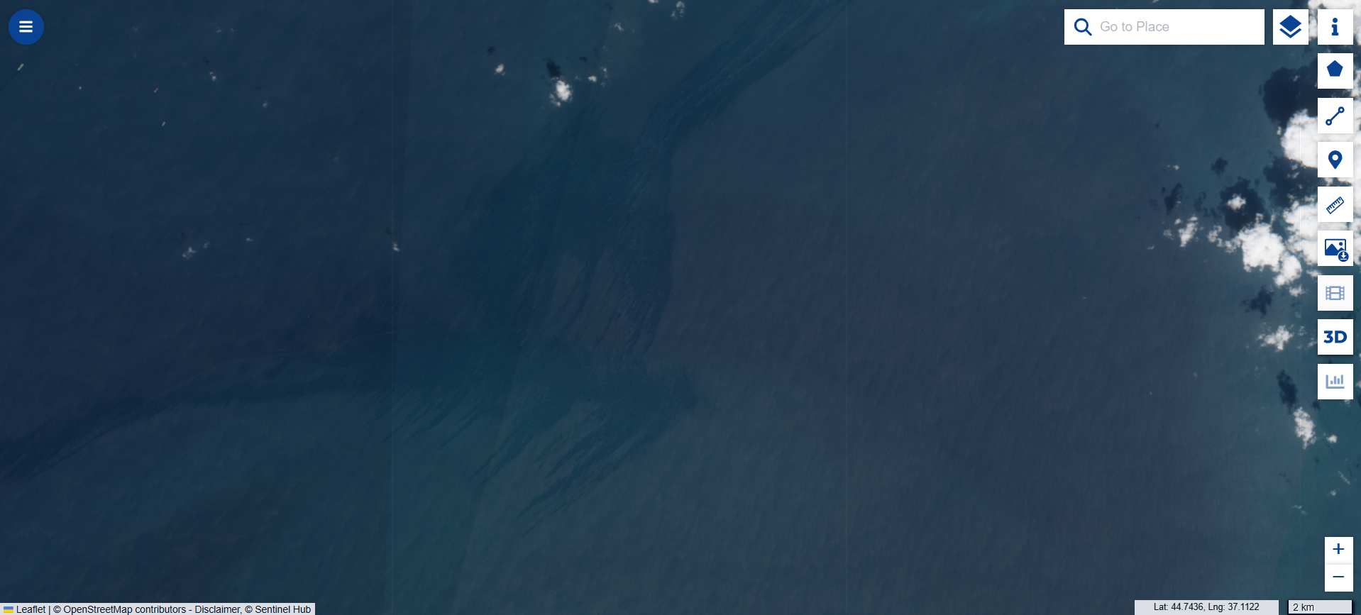 Из-за сильной облачности на доступных снимках Sentinel-2 за 9 апреля этой области на карте не видно, но на кадрах, сделанных спутником Sentinel-1 8 апреля, этого пятна еще нет. Когда именно оно образовалось, неясно.
